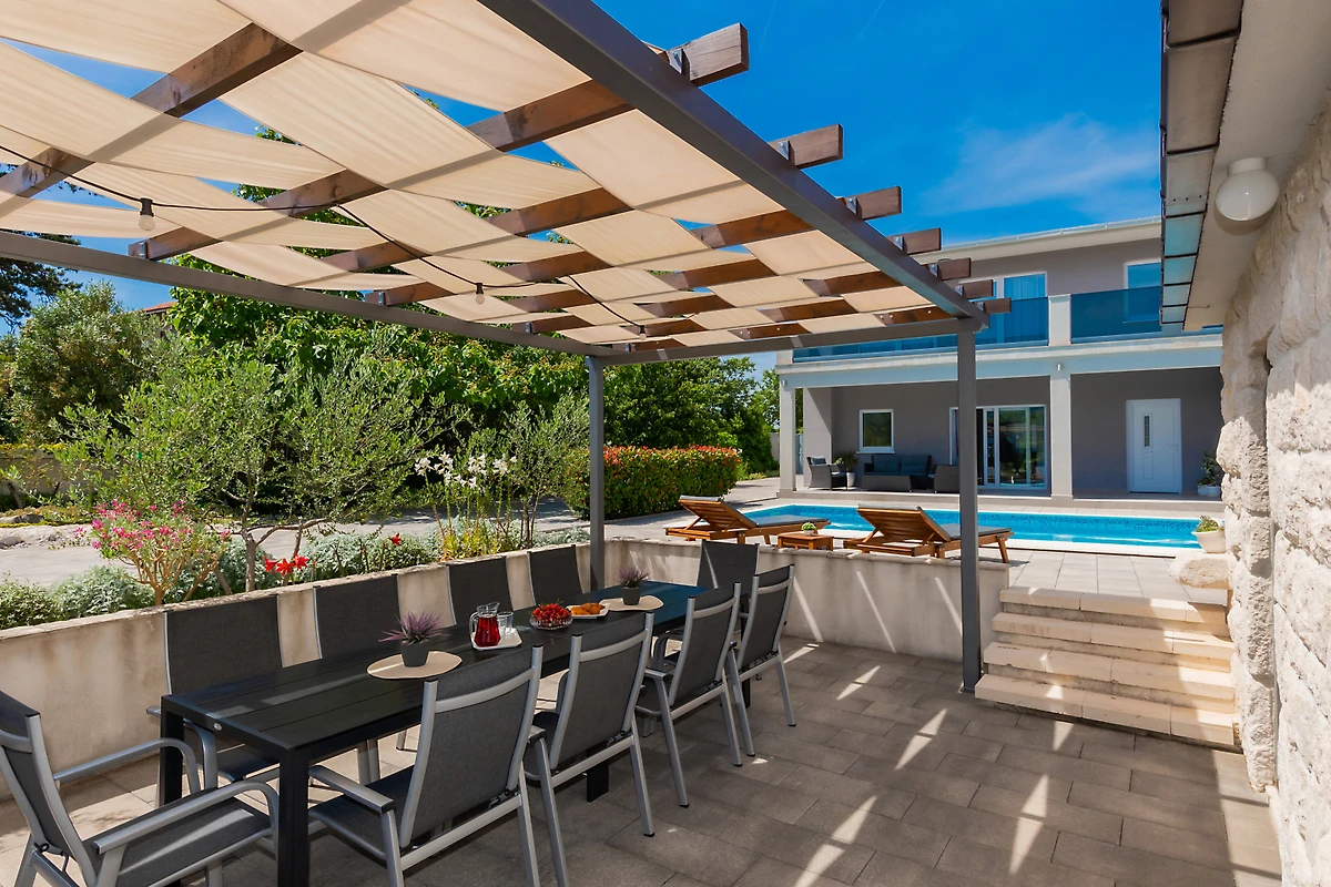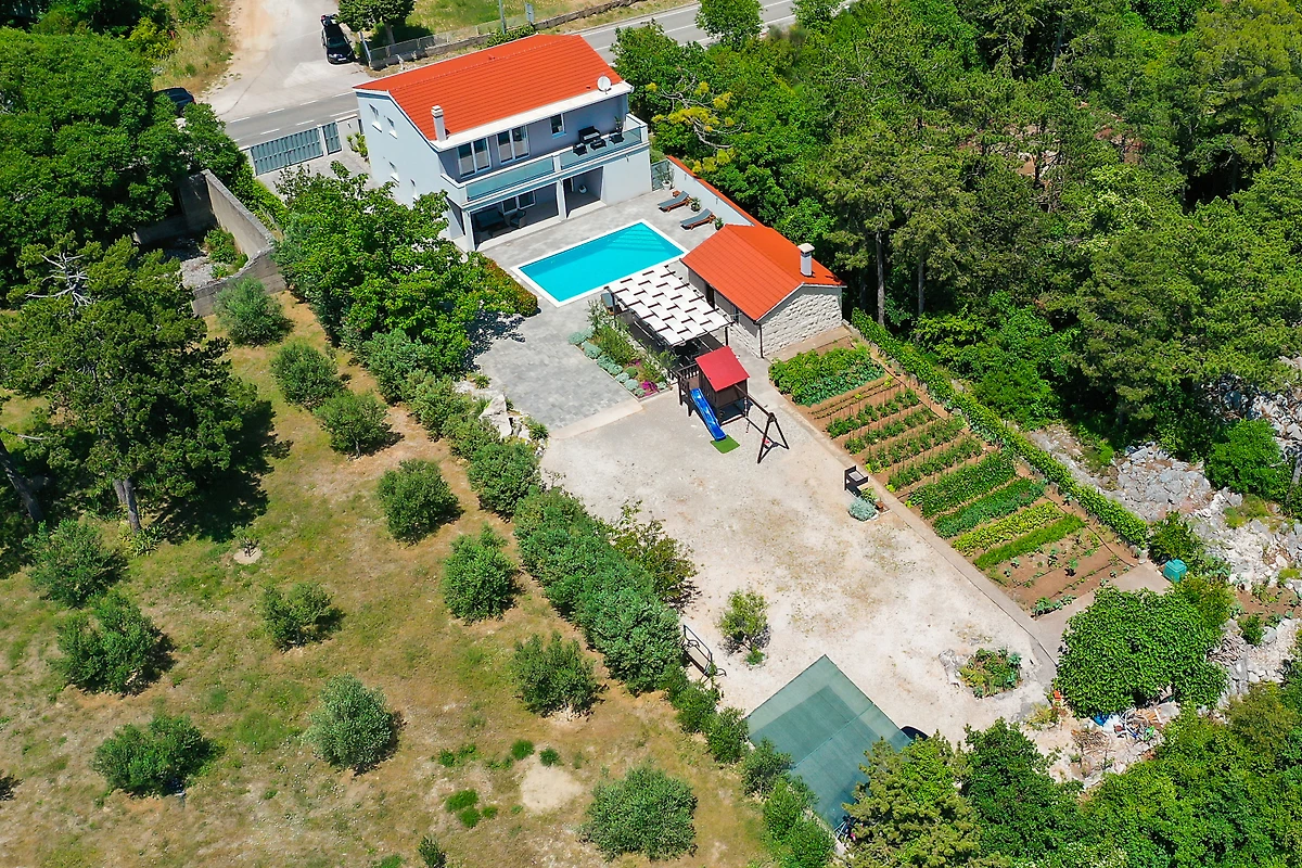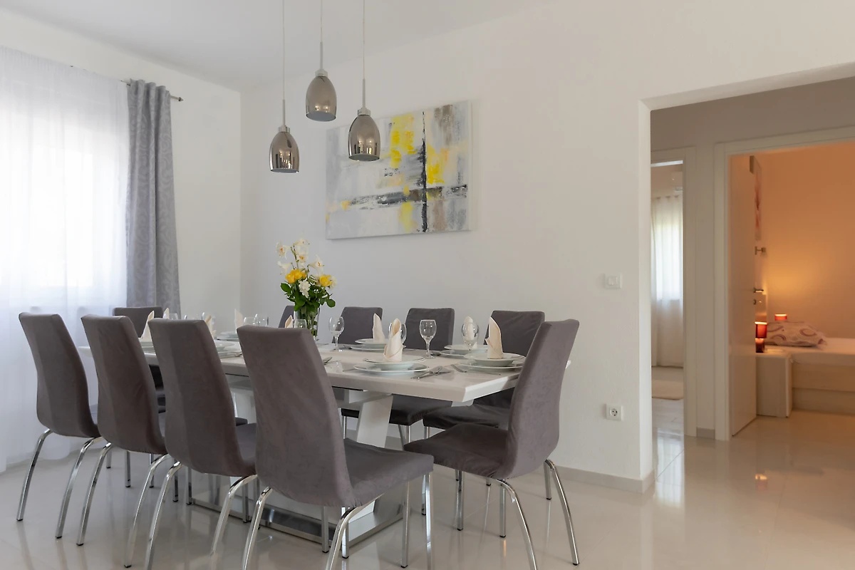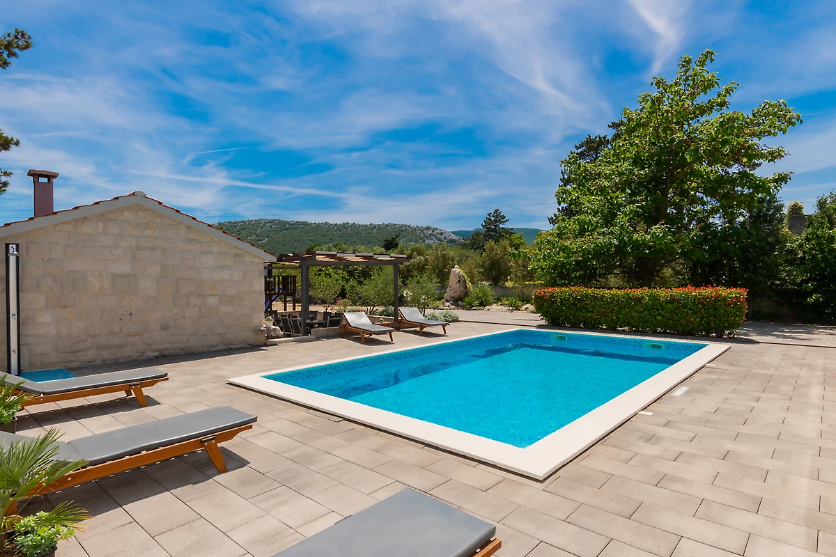 Scopri Villa Ivanova, un accogliente rifugio per famiglie situato nell'incantevole villaggio di Zadvarje, che offre un'esperienza di vacanza eccezionale per fino a 12 ospiti. Questa stupenda villa di 270 metri quadrati sorge su un generoso appezzamento di 1.538 metri quadrati, offrendo ampi spazi e privacy per famiglie e gruppi.