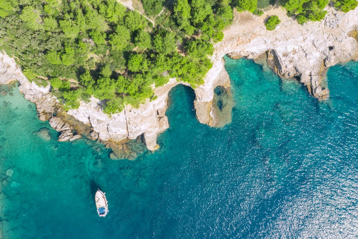 La villa è comodamente situata a soli 500 metri da una spiaggia rocciosa e 1000 metri dal centro cittadino di Medulin. Servizi essenziali come un supermercato sono entro 800 metri, e l'aeroporto di Pola è a circa 18 chilometri di distanza. I comfort moderni includono l'aria condizionata, WiFi, TV satellitare e un ferro da stiro per la comodità degli ospiti.