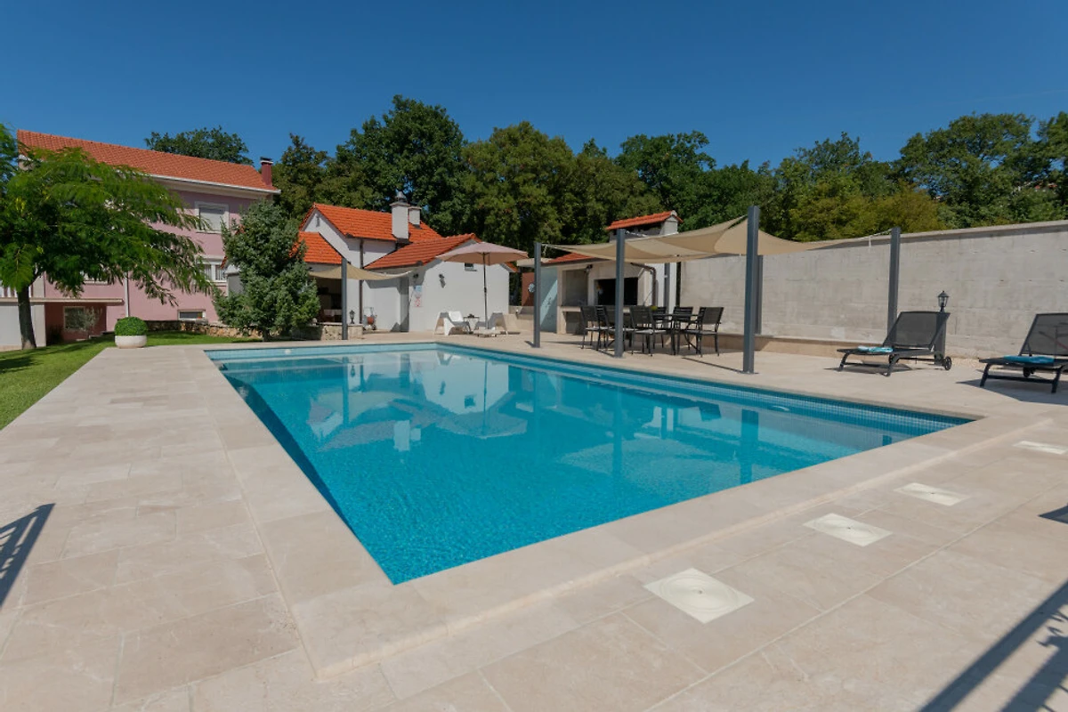 Il parcheggio è comodo con 4 posti auto privati all'aperto situati direttamente presso la proprietà. L'intrattenimento è garantito da una TV che offre più opzioni linguistiche. Le dotazioni aggiuntive includono un ferro da stiro e una piscina privata delle dimensioni di 5x11 metri, perfetta per giorni estivi di relax.