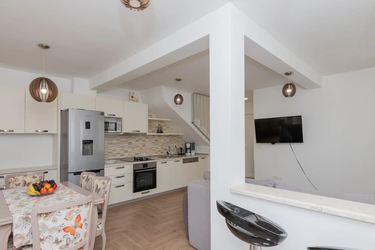 Scopri una deliziosa casa vacanze incastonata nell'urbanizzazione tranquilla di Drvenik, che offre un rifugio perfetto per famiglie e coppie in cerca di una fuga rilassante. Questa spaziosa proprietà di 103 m² accoglie comodamente fino a 7 ospiti, con 3 camere da letto matrimoniali che garantiscono un riposo notturno riposante.