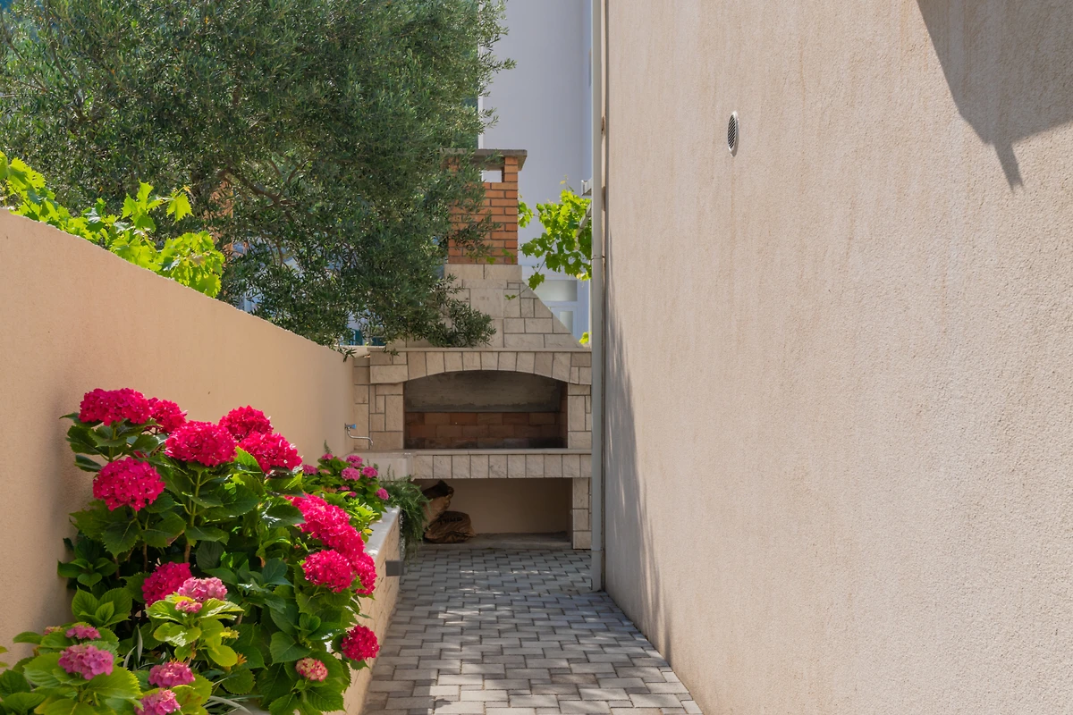 Esci fuori per scoprire un delizioso giardino con una terrazza e un'area barbecue, ideale per pranzi all'aperto e per godere delle stupende viste montane. La proprietà si trova a soli 80 metri da una bellissima spiaggia sabbiosa a Drvenik, con un supermercato nelle vicinanze a Zaostrog.