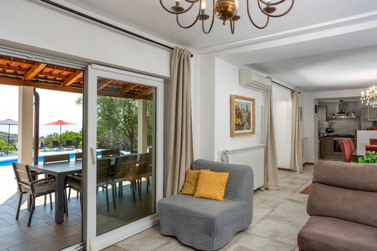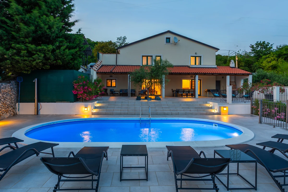 Scopri Villa Stanzia Natura, un magnifico ritiro da 140m² adatto alle famiglie, immerso nell'ambiente sereno di Bakar, che offre stupende viste sul mare, sulle montagne e sulla piscina privata.