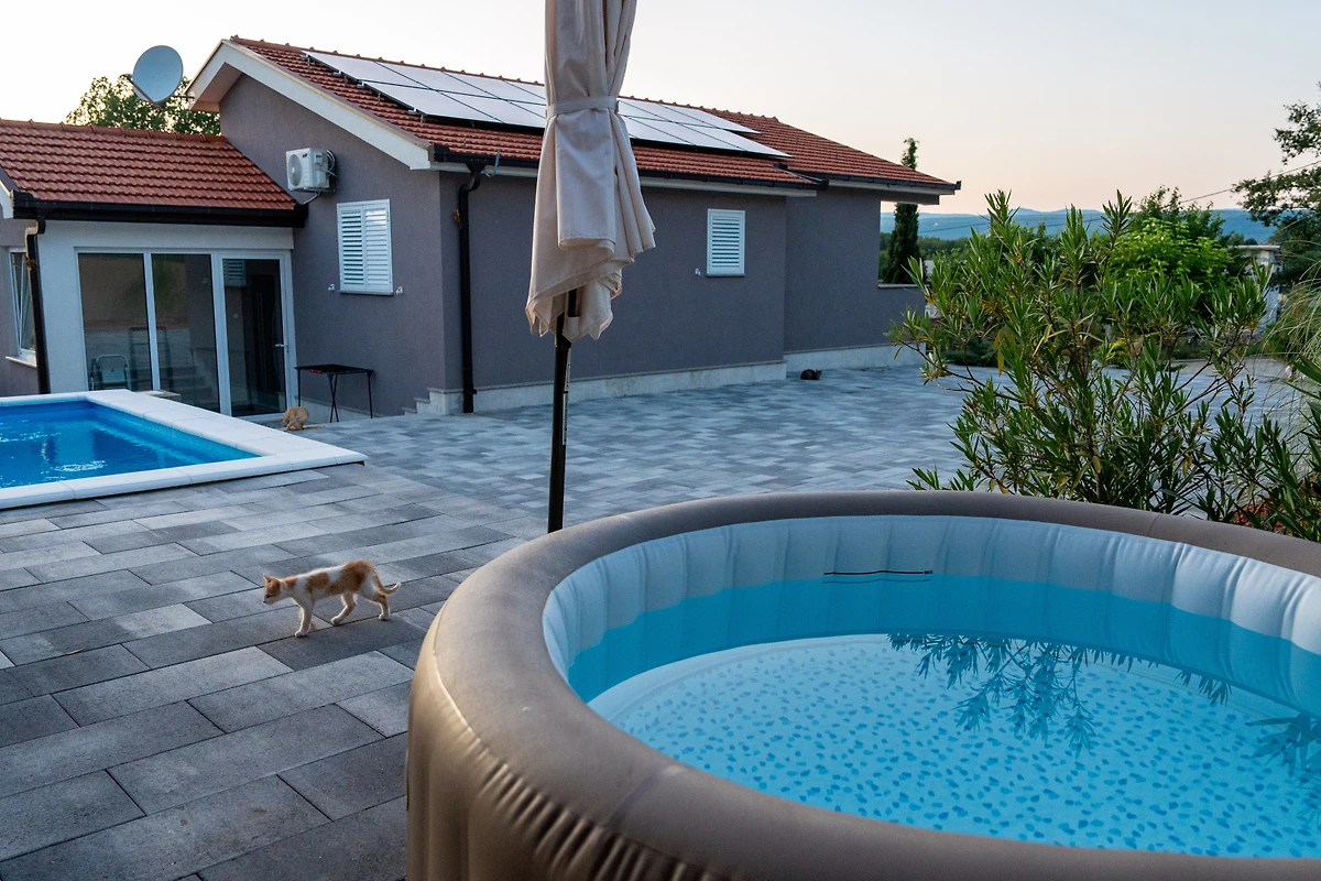 Per un relax assoluto, la villa vanta un'area spa e jacuzzi lussuosa. Mentre gli animali domestici non sono ammessi, la proprietà accoglie gruppi di giovani e offre un ambiente rurale tranquillo a soli 7 km dalla città di Imotski e dal supermercato, con la bellissima spiaggia di Baška Voda a circa 23 km di distanza.