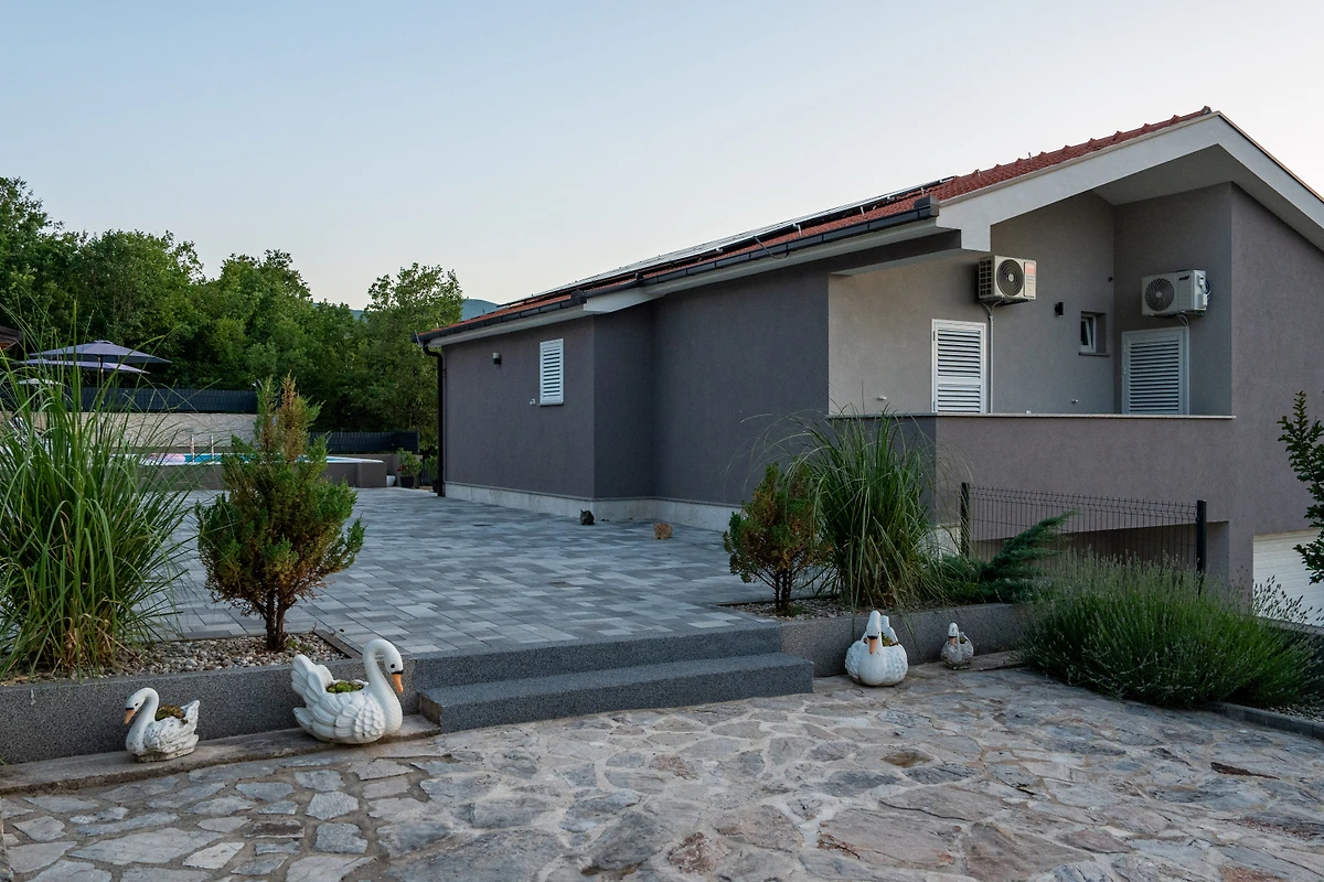 Villa Klarita offre un delizioso rifugio per famiglie e coppie che cercano una tranquilla fuga in campagna a Drum. Questa spaziosa proprietà di 130 metri quadrati si trova su un generoso appezzamento di 810 metri quadrati, offrendo ampio spazio e privacy.