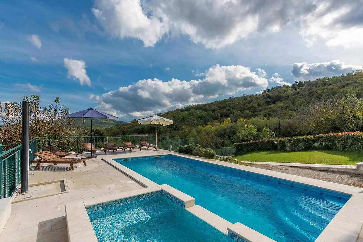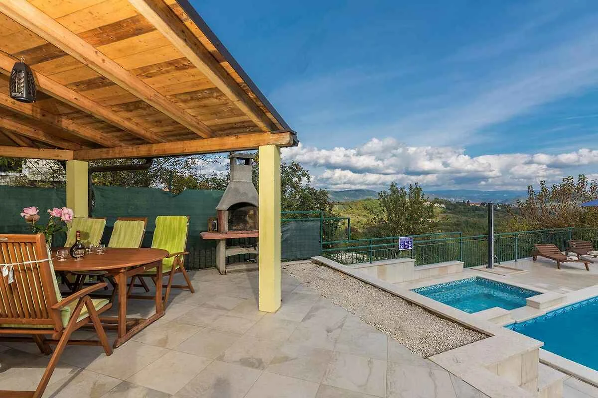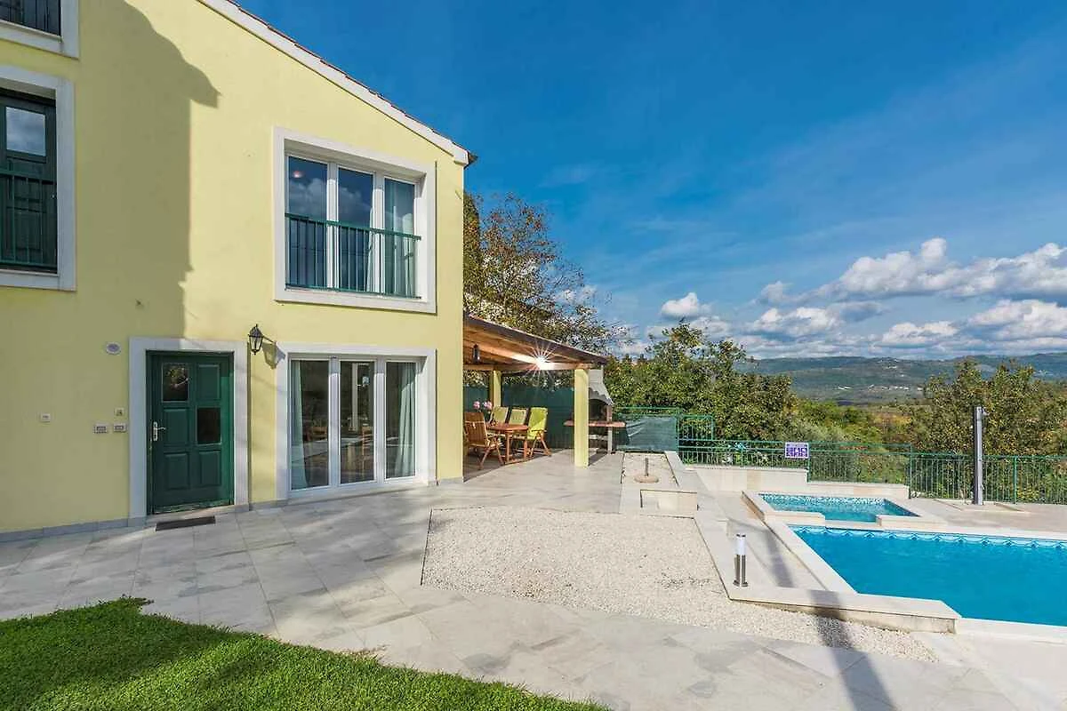 Karojba. La villa si trova in una trama del giardino chiuso, grande 300 mq. Parcheggio (per 2 auto) sulla strada davanti alla casa.