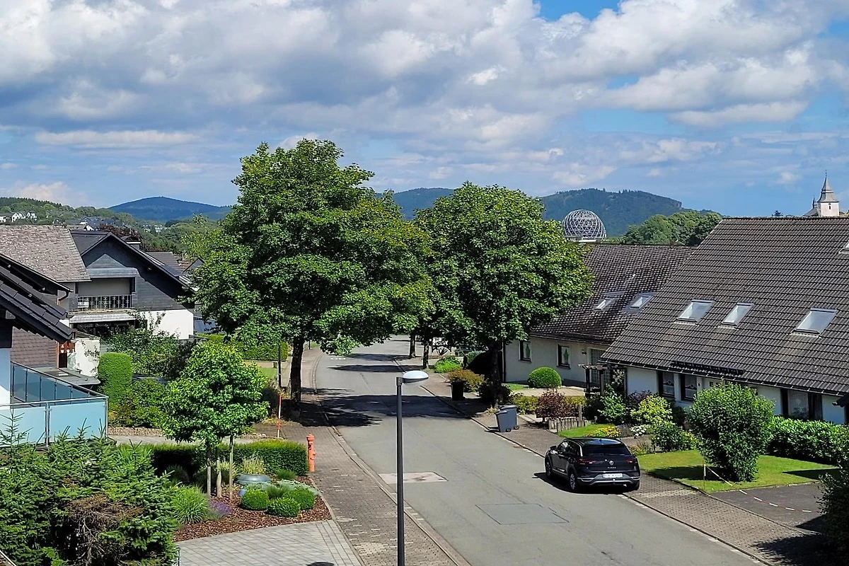 In una posizione tranquilla e centrale nel centro di Winterberg (a 300 metri dalla piazza del mercato di Winterberg, a pochi passi dall'ingresso del carosello sciistico di Winterberg, skilift n. 12, Rauher Busch), il luminoso appartamento Winterberg, arredato con mobili di alta qualità, si trova al 1° piano (tre rampe di scale) senza ascensore.