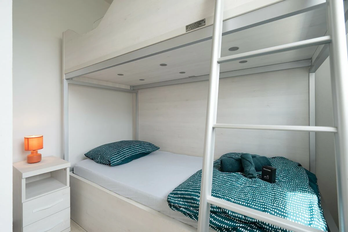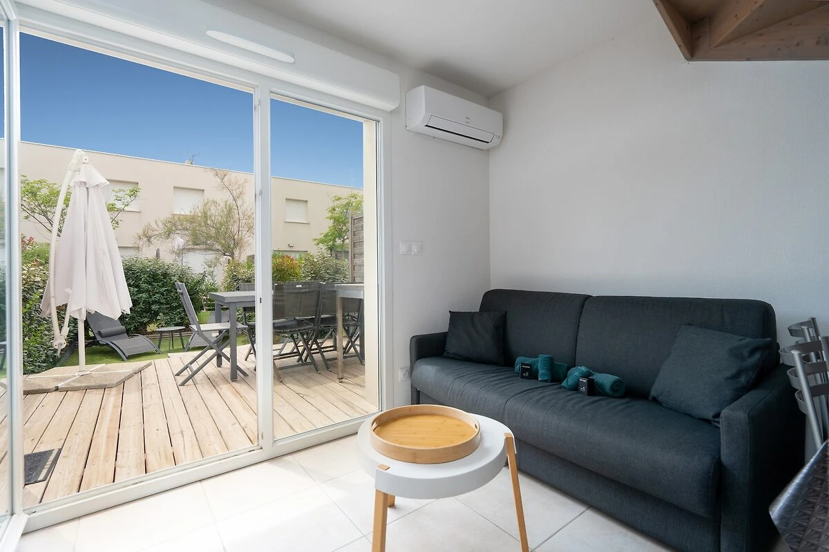 All'interno, troverete un luminoso soggiorno con divano letto e TV, una cucina completamente attrezzata con elettrodomestici moderni e due accoglienti camere da letto: una con letto matrimoniale, l'altra con letti a castello, ideale per i bambini. Il giardino privato è perfetto per pranzi o cene all'aperto o tranquilli riposini pomeridiani. Approfittate dell'accesso a una piscina riscaldata riservata ai residenti e usufruite del WiFi gratuito, di un parcheggio privato e di servizi extra pensati per rendere il vostro soggiorno semplice e piacevole.
