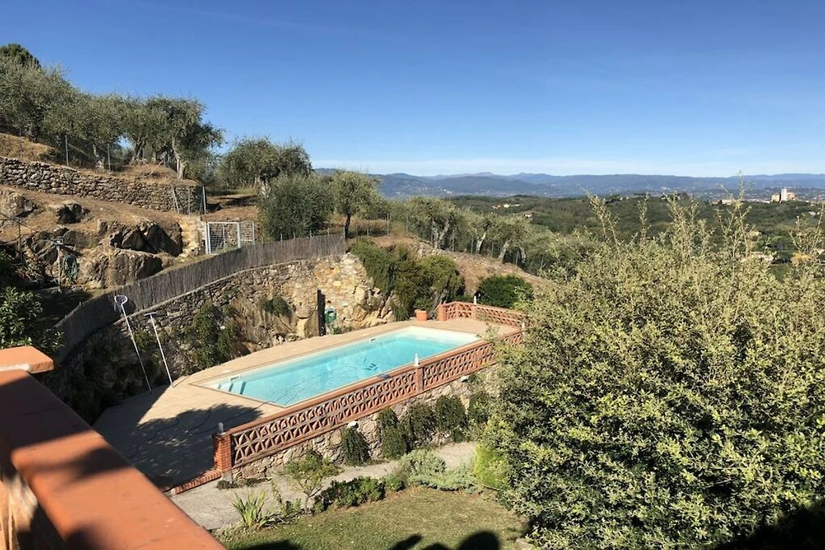 La casa vanta una splendida piscina interrata (10 x 4 m, con scala interna e copertura retrattile) e un'ampia proprietà completamente recintata. Il giardino è ricco di alberi di ogni tipo: ulivi, querce e lecci. Rilassatevi a bordo piscina e godetevi la splendida vista sui piccoli borghi che si estendono da Lucca a Montecatini e Pistoia.