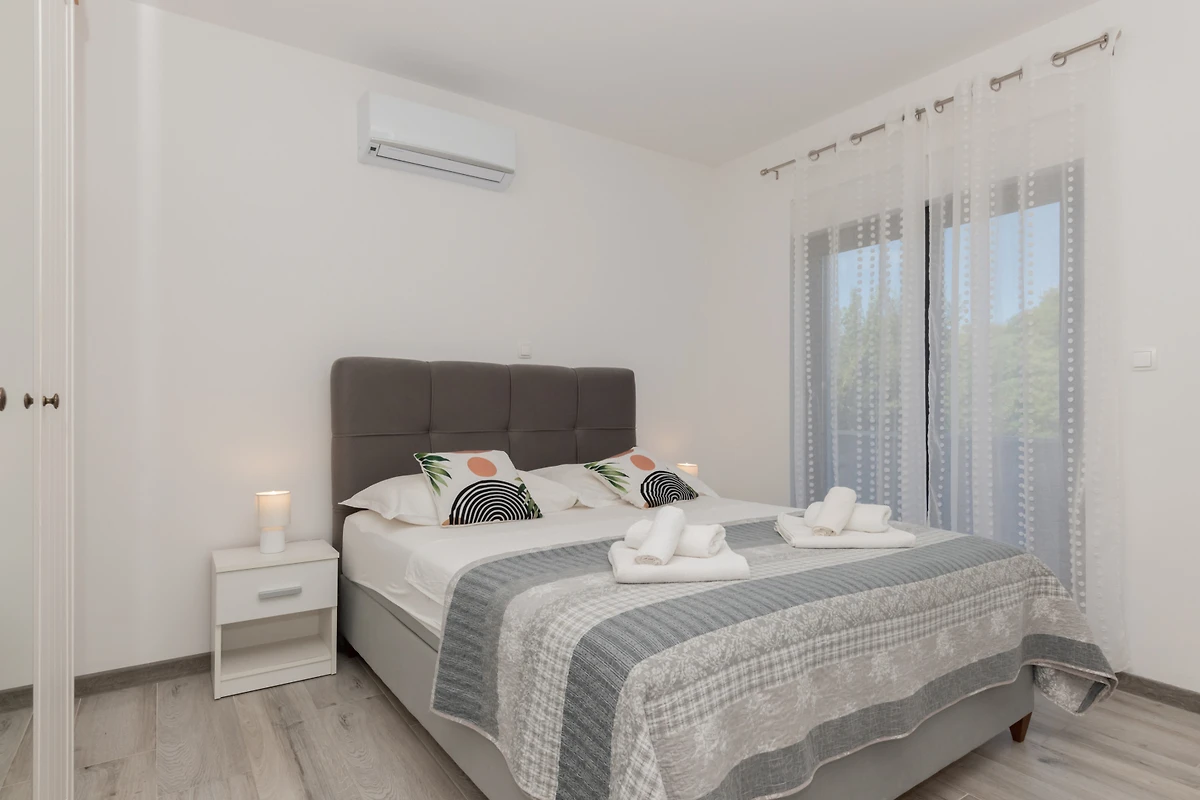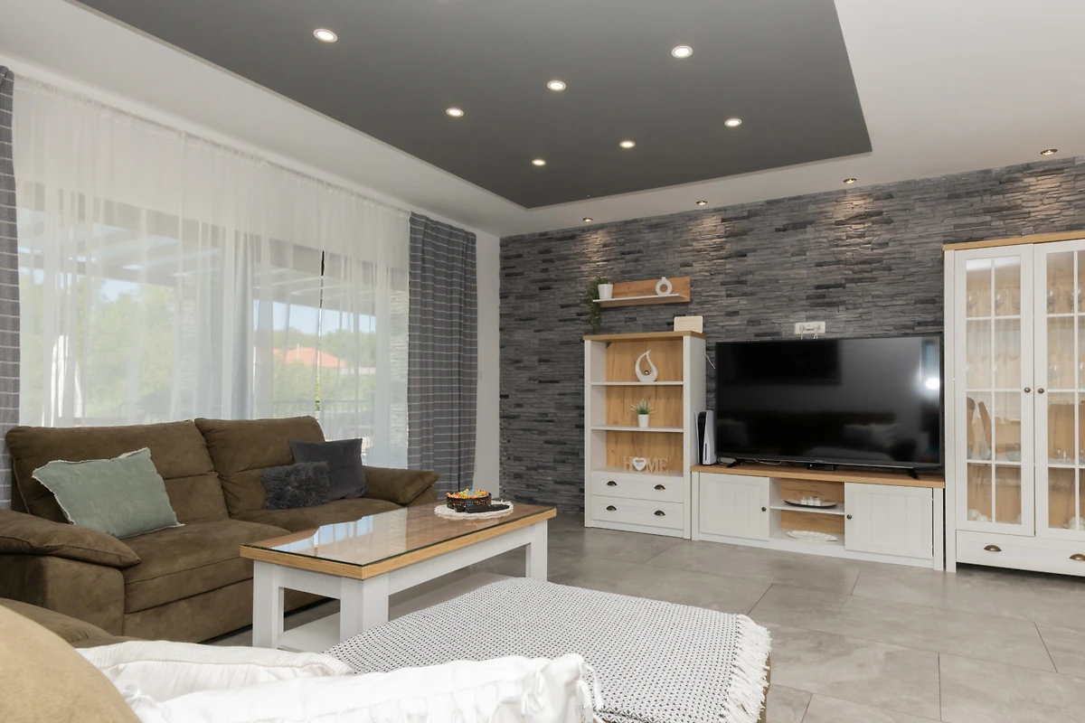 Scopri Villa Paradise Grubine, un magnifico rifugio rurale incastonato in una posizione tranquilla perfetta per famiglie e coppie che cercano una fuga rilassante. Questa spaziosa villa può ospitare comodamente fino a 12 ospiti in 5 camere da letto splendidamente arredate, con 4 letti matrimoniali e 2 letti singoli.