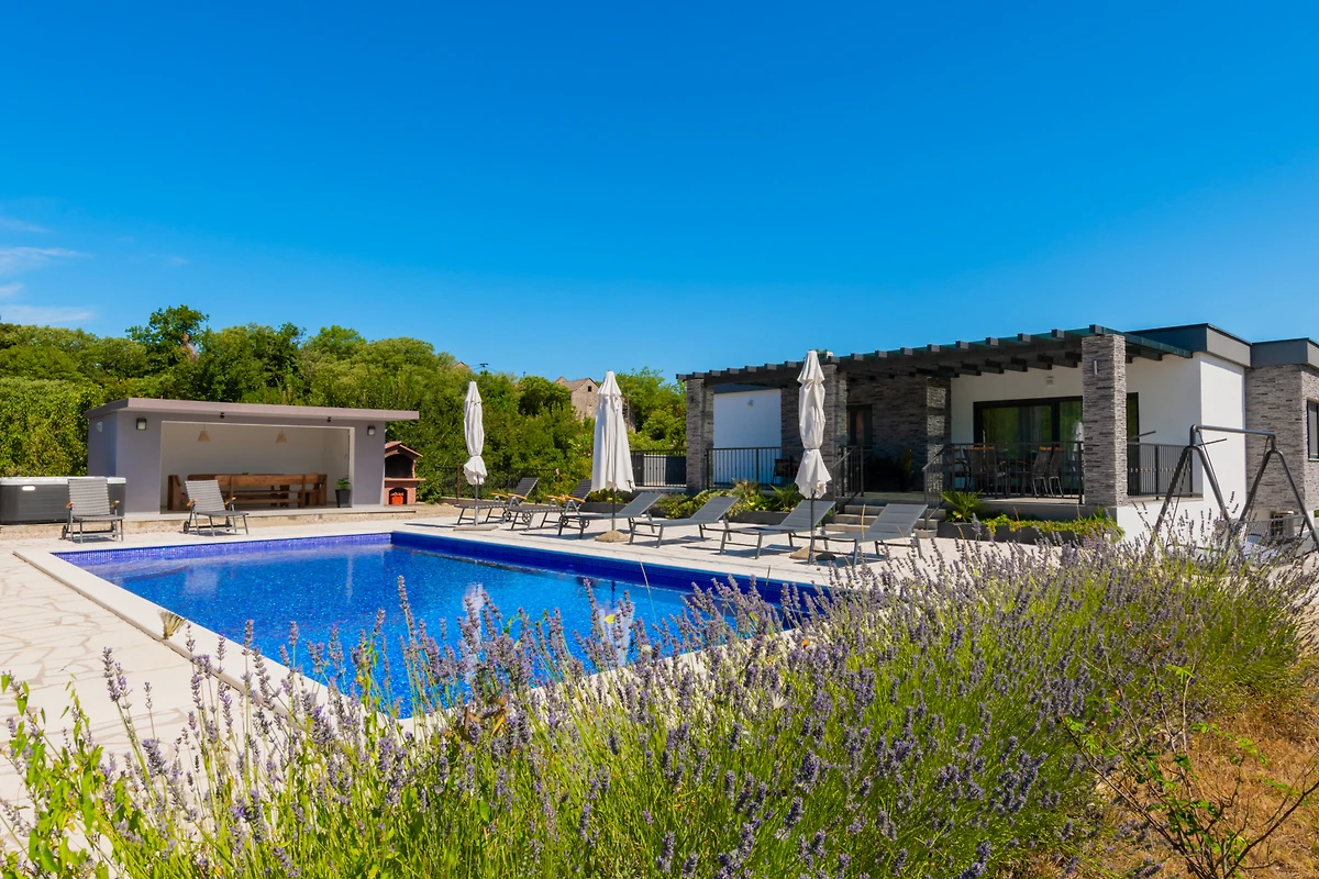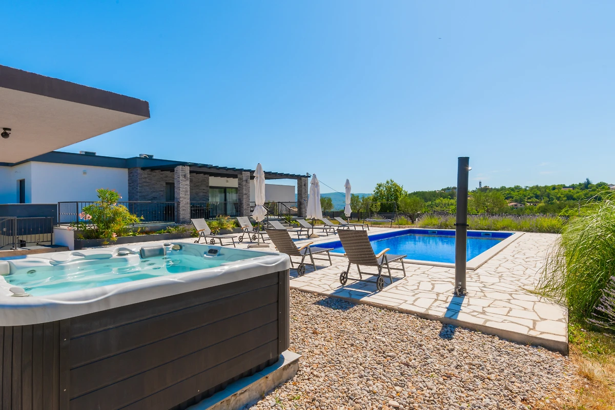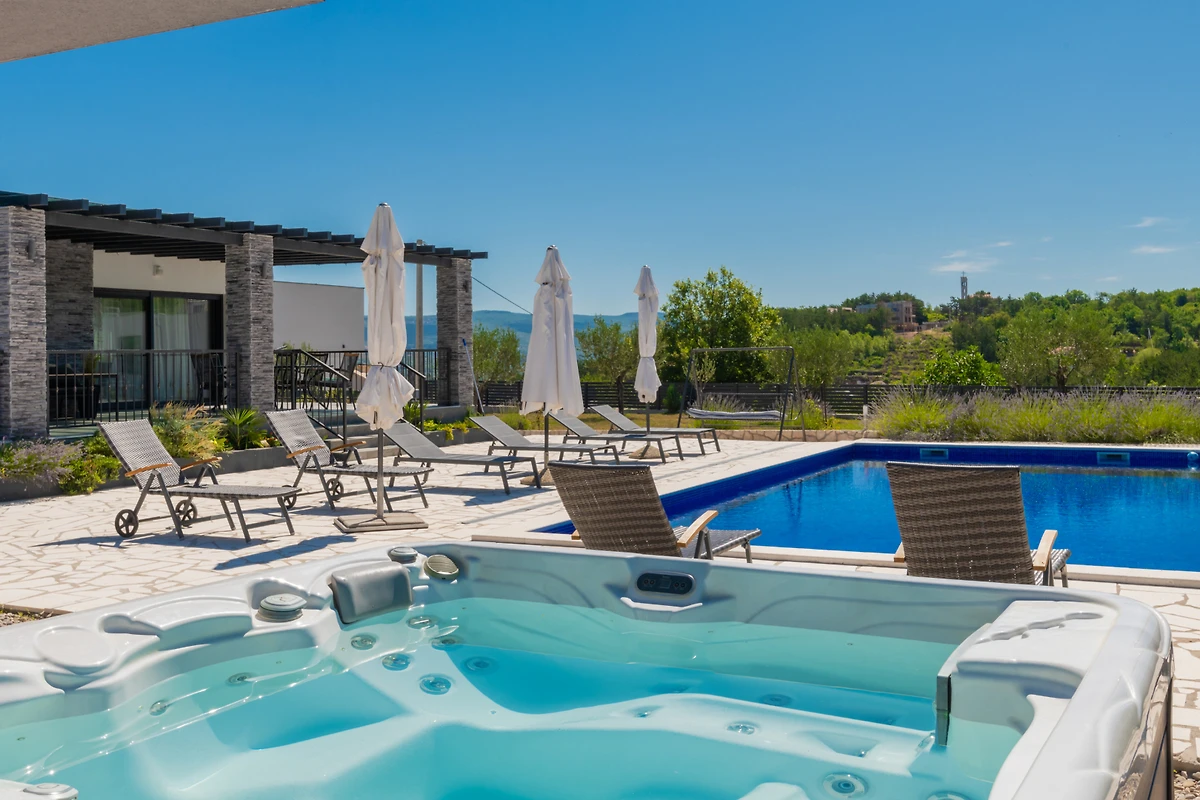 Concedetevi il lusso della spa e della jacuzzi in loco, perfette per rilassarsi dopo una giornata di esplorazione. La villa offre viste mozzafiato su montagne, piscina e giardino. Le attrazioni nelle vicinanze includono la spiaggia di Bašska Voda (22 km), la città di Imotski (5 km) e un supermercato locale (4 km), con l'aeroporto di Spalato a circa 90 km di distanza.