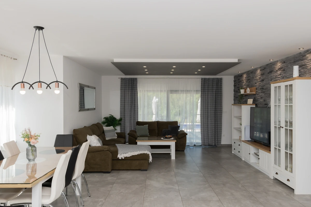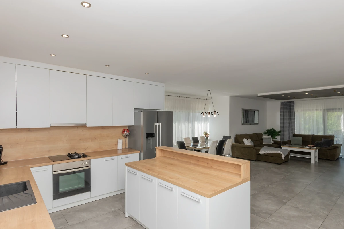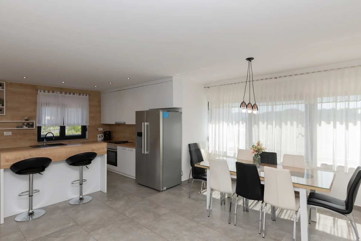 La villa vanta impressionanti 340 metri quadrati di spazio abitativo su un generoso appezzamento di 2.750 metri quadrati, offrendo ampio spazio per il relax e il divertimento. Gli ospiti apprezzeranno la cucina completamente attrezzata in stile americano con dotazioni moderne tra cui piano cottura in vetroceramica, frigorifero, congelatore, forno, microonde, lavastoviglie, macchina da caffè e stoviglie complete.