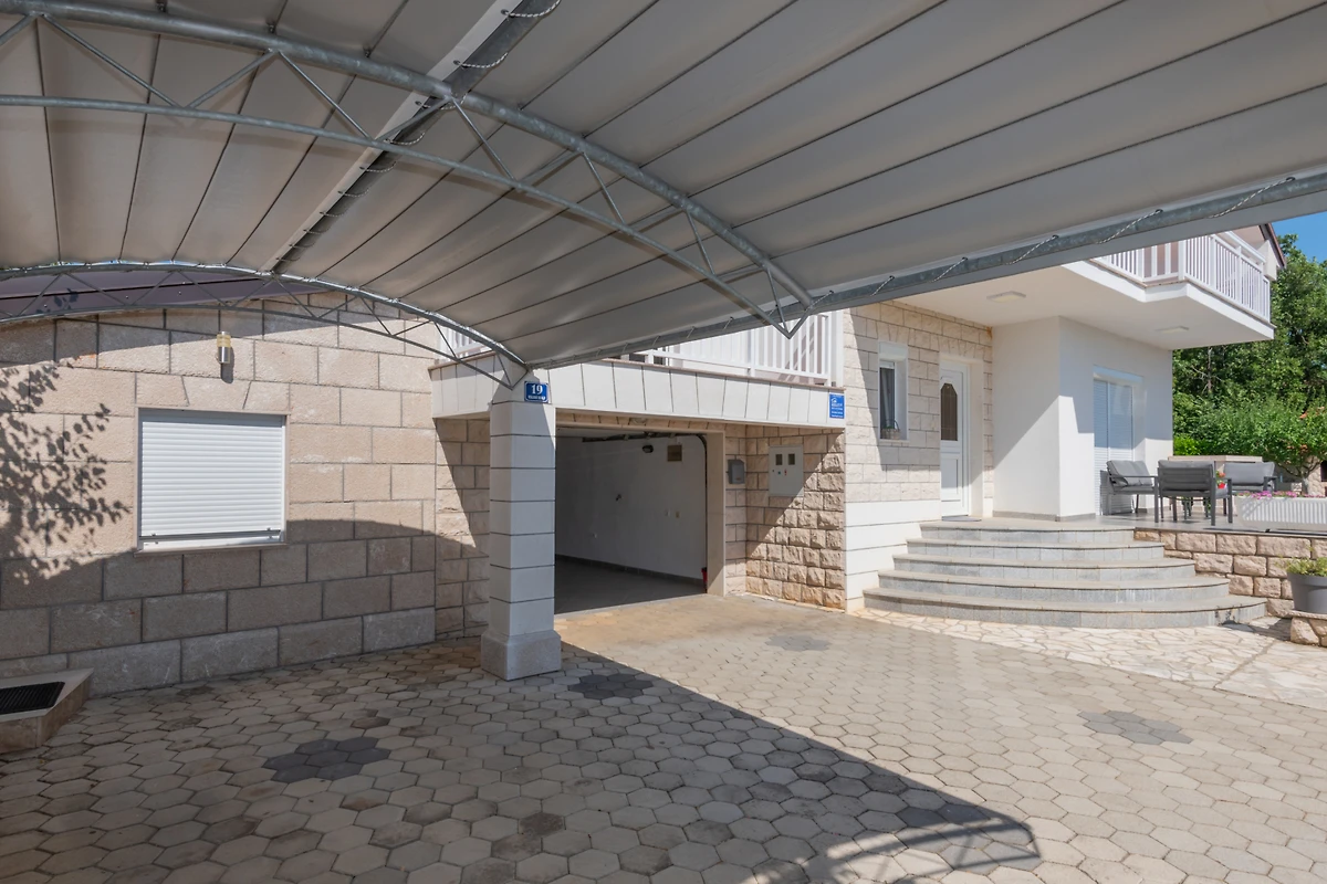 Parcheggio privato coperto per due veicoli garantisce un facile accesso e comodità. Mentre gli animali domestici non sono ammessi, la proprietà accoglie gruppi di giovani e fornisce l'aria condizionata per soggiorni estivi confortevoli.