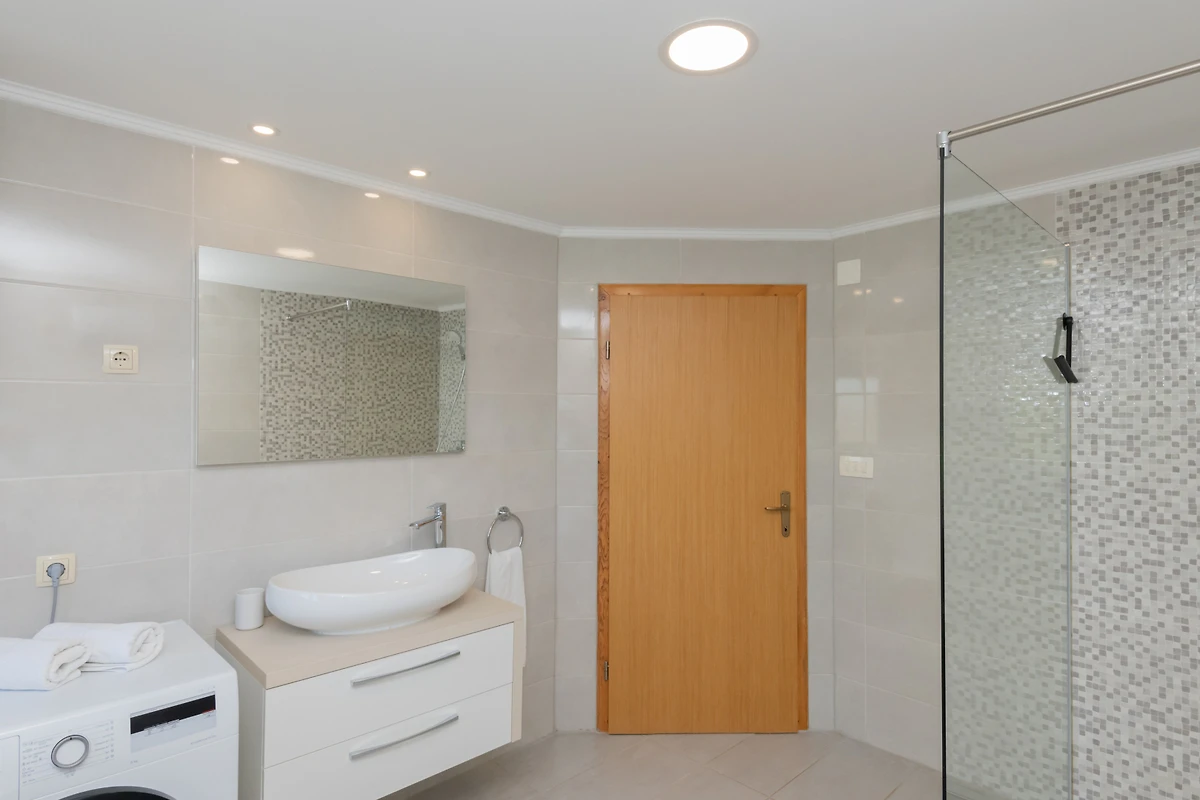La villa vanta una cucina in stile americano ben attrezzata con amenità moderne tra cui un fornello a gas, frigorifero, congelatore, lavastoviglie, forno a microonde, macchina da caffè e stoviglie complete. Goditi la comodità di una lavatrice e di un ferro da stiro per un soggiorno confortevole.