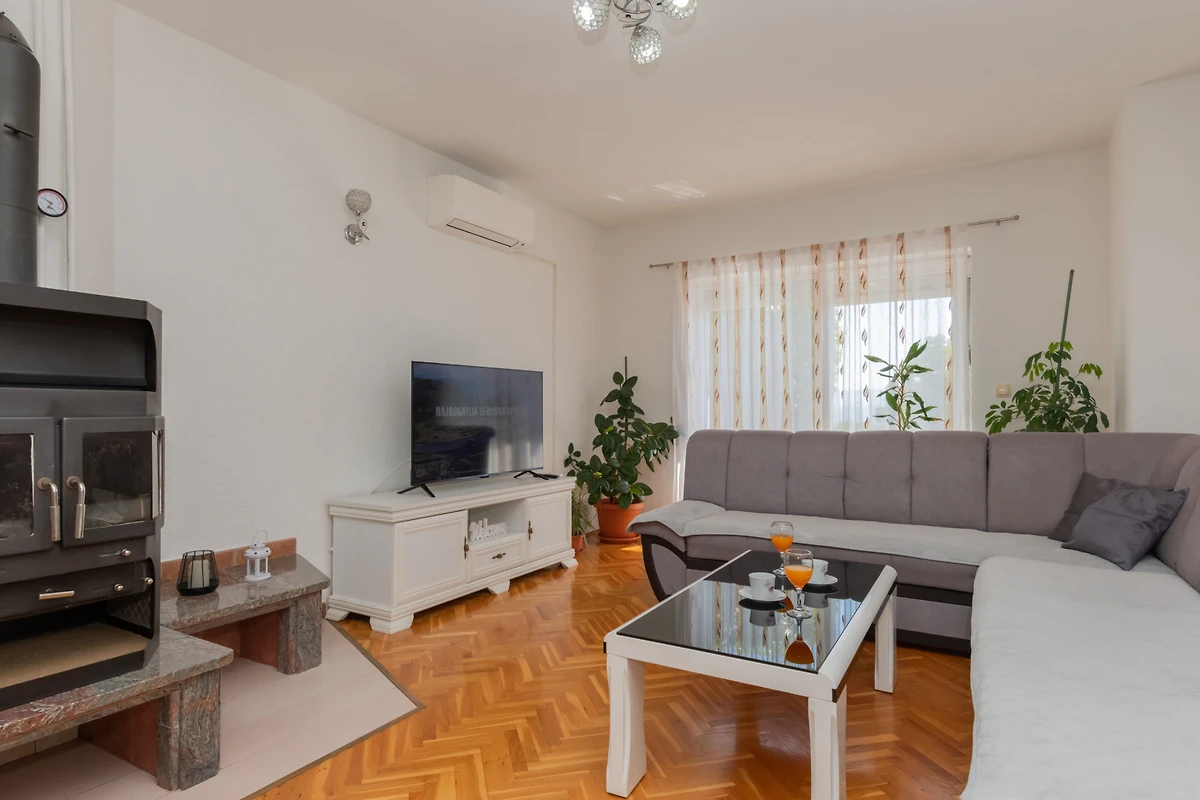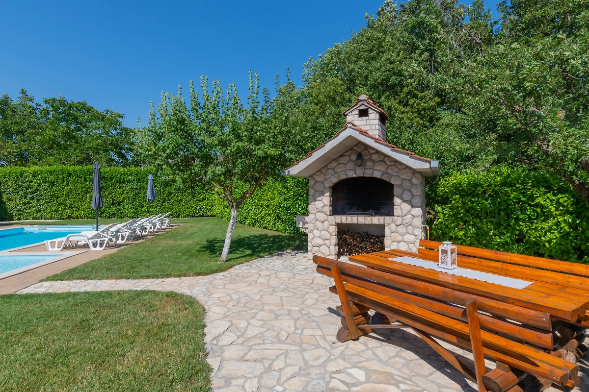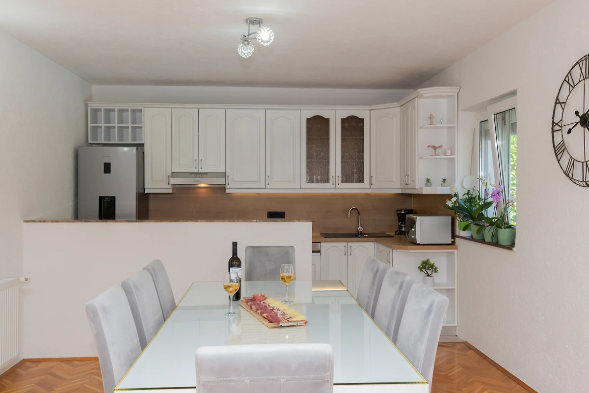 Scopri Villa Jelavic, un incantevole rifugio rurale incastonato nel paesaggio sereno di Donji Vinjani, perfetto per famiglie e coppie che cercano una fuga tranquilla. Questa spaziosa villa di 170 m² può ospitare comodamente fino a 8 ospiti in 4 camere da letto, con un mix di letti matrimoniali e singoli.