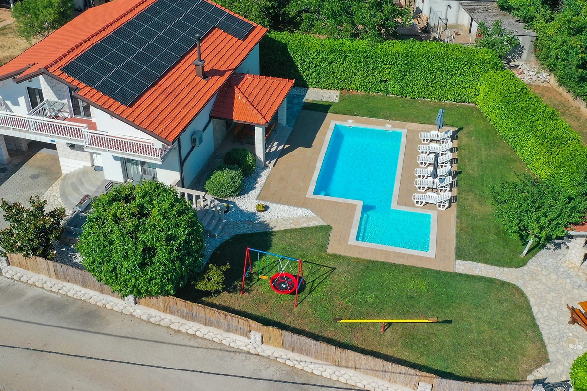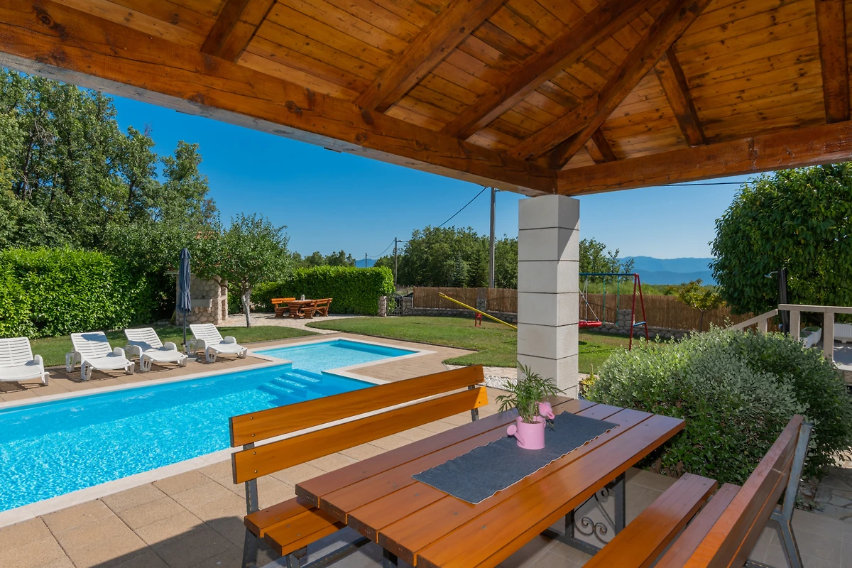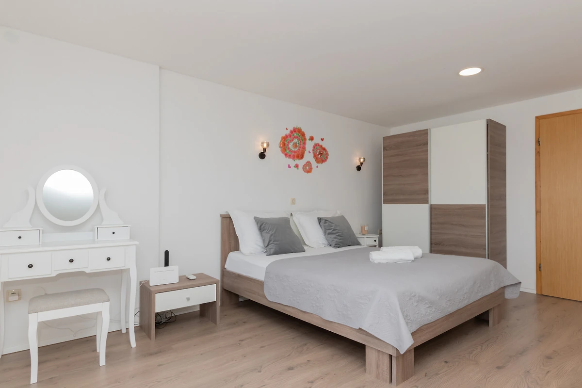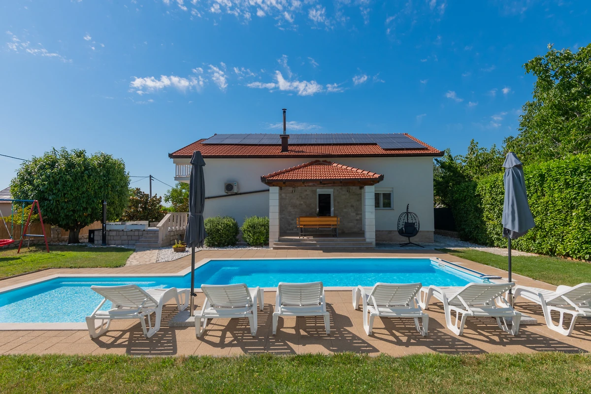 Scopri Villa Jelavic, un incantevole rifugio rurale incastonato nel paesaggio sereno di Donji Vinjani, perfetto per famiglie e coppie che cercano una fuga tranquilla. Questa spaziosa villa di 170 m² può ospitare comodamente fino a 8 ospiti in 4 camere da letto, con un mix di letti matrimoniali e singoli.