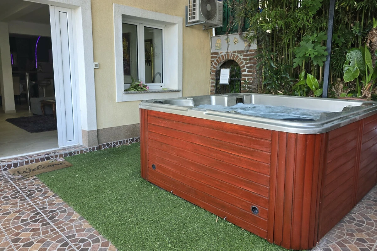 L'alloggio è dotato dei seguenti elementi: giardino, giardino recintato, terrazza, lavatrice, barbecue, ferro da stiro, internet (Wi-Fi), vasca idromassaggio, aria condizionata, parcheggio all'aperto nello stesso edificio, 1 TV, TV satellitare.
