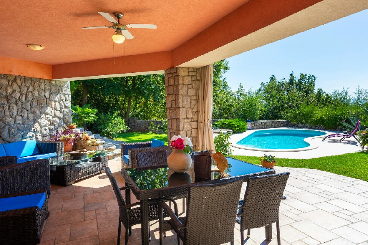 Gli appassionati di attività all'aperto ameranno l'ampio appezzamento di 1000 m², con un bellissimo giardino, area barbecue, terreno recintato e una terrazza. La proprietà offre 2 posti auto privati in garage, rendendo comodo per gli ospiti con veicoli. La villa è a misura di animale domestico, consentendo un animale, ed è situata in una posizione tranquilla vicino a una spiaggia rocciosa a Kostrena, a soli 6 km da Rijeka.