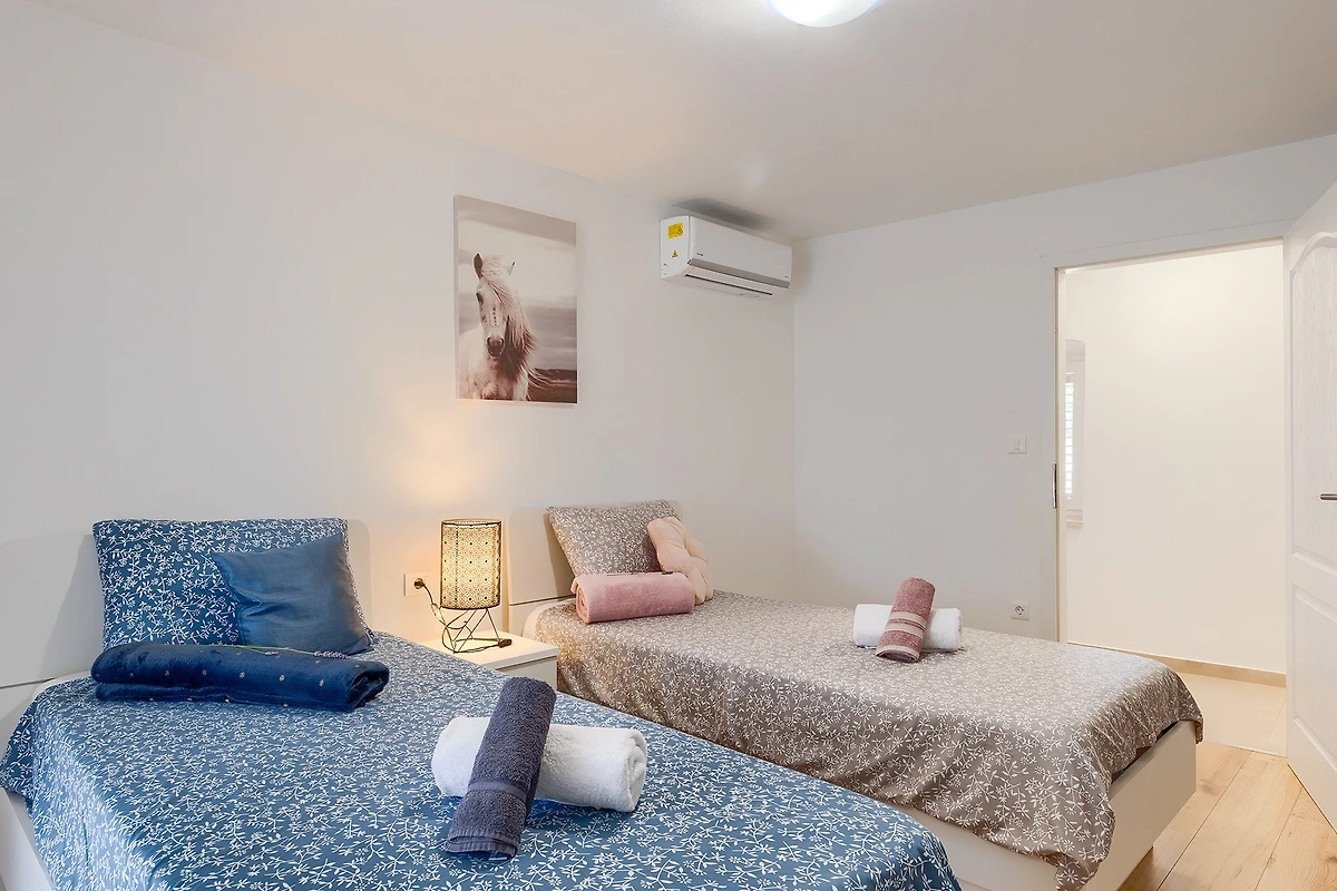 La villa vanta 4 camere da letto ben attrezzate che presentano un mix di letti matrimoniali e singoli, garantendo un soggiorno riposante per ogni ospite. Con 6 bagni - inclusi 3 docce, 1 con una lussuosa vasca da bagno, e 2 servizi igienici aggiuntivi - c'è abbondanza di spazio e privacy per tutti.