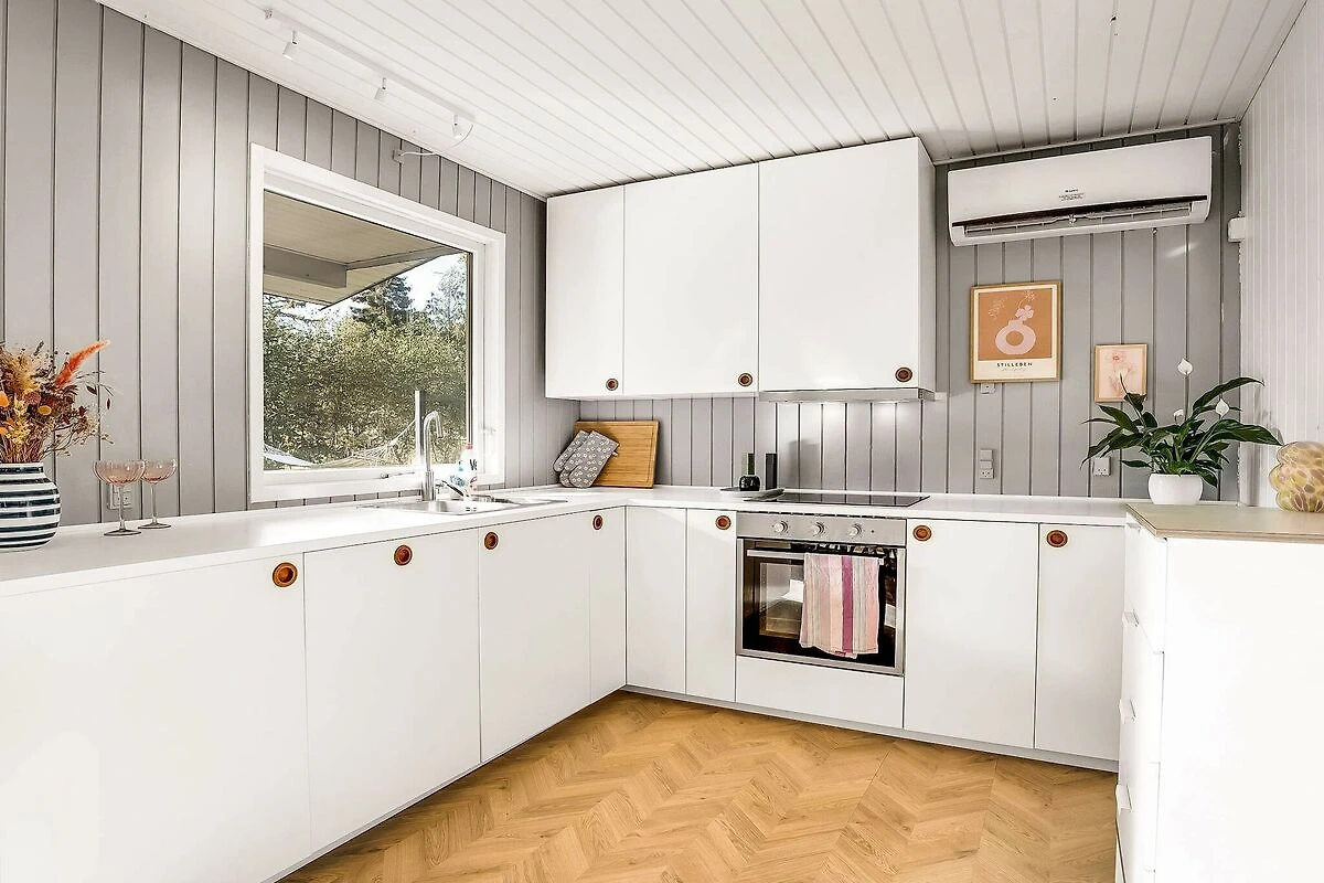 La casa offre connessione internet gratuita e un ampio soggiorno con TV e Chromecast, oltre a una stufa a legna perfetta per le serate fredde e che crea un'atmosfera meravigliosamente accogliente. Il soggiorno dispone anche di una pompa di calore aria-aria e di numerosi giochi da tavolo per bambini e ragazzi. La cucina, aperta e collegata al soggiorno, è ben attrezzata con piano cottura a induzione, frigorifero con congelatore, forno a microonde, macchina per il caffè, lavastoviglie e lavatrice. Il cottage dispone di tre camere da letto, tutte con letti matrimoniali. Il bagno è dotato di WC, lavandino e doccia. Una terrazza semi-coperta molto accogliente con ampio spazio per prendere il sole e rilassarsi, e quando è il momento di preparare la cena, potete farlo sulla griglia a gas. Il cottage si trova su un terreno naturale di 1000 m², quindi c'è molto spazio per giocare e rilassarsi, e per i bambini sono disponibili un'altalena e una struttura con scivolo. Dopo una lunga giornata in spiaggia, potete utilizzare la doccia esterna (da maggio a ottobre).