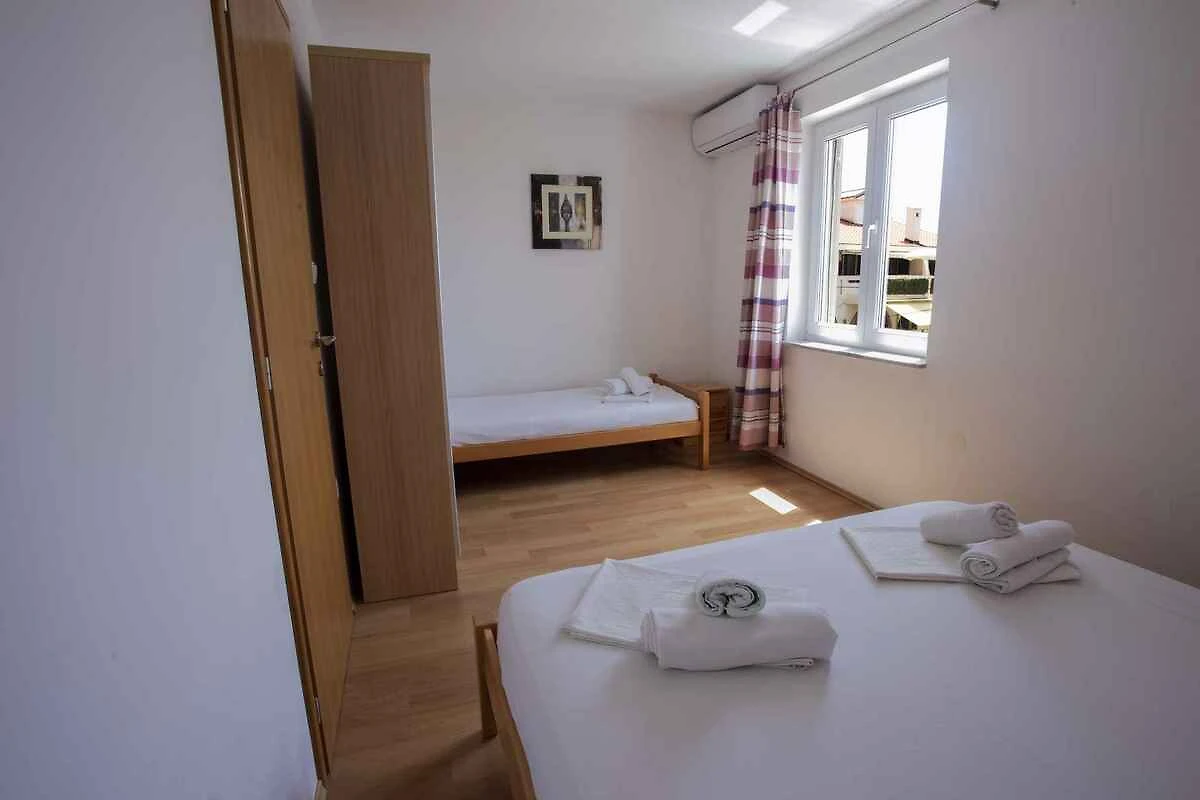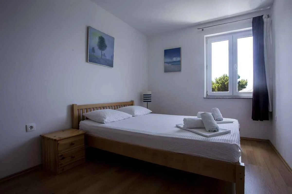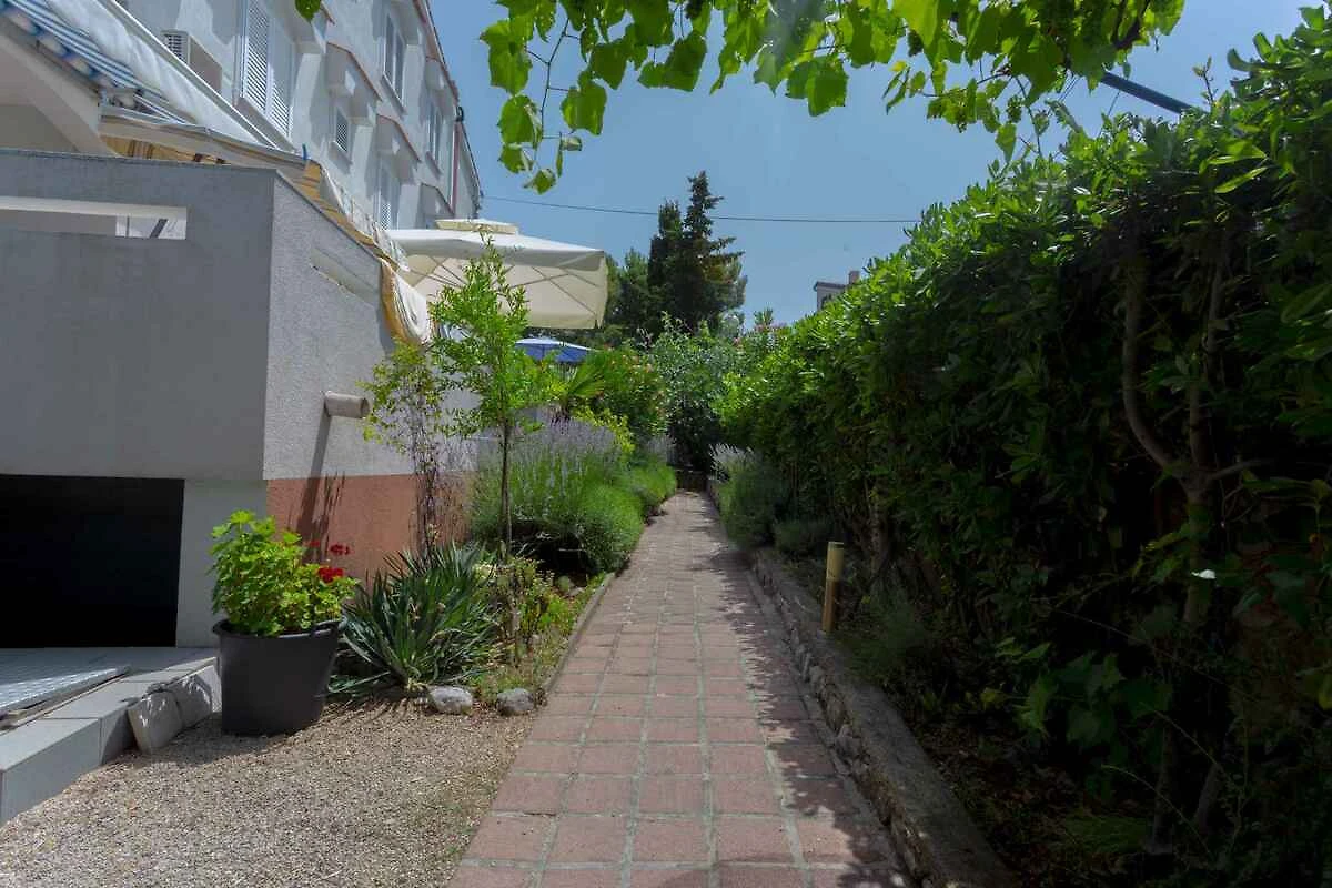 Punat. L' appartamento vacanze si trova in una trama del giardino chiuso con fiori, delimitata da una recinzione. Il padrone di casa vive stabilmente nella casa, ma usa un ingresso separato. L'accesso avviene direttamente dalla strada principale (asfaltata). Parcheggio sulla proprietà.