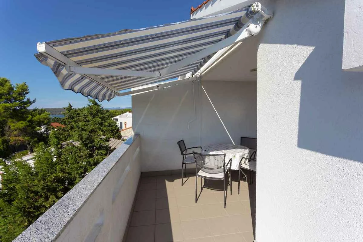 L' appartamento vacanze si trova in un appartamento casa ed è arredato in stile tradizionale. La proprietà si trova in periferia. Anche a causa della vista dalla struttura sul mare e tranquilla e soleggiata posizione, il domicilio è popolare. Attrezzature in comune: possibilità di grigliare, terrazza e fattoria.