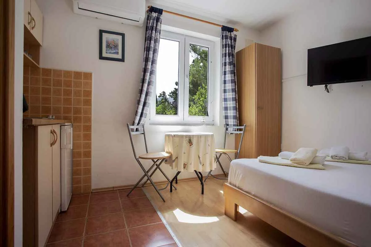 Lo studio si trova in un appartamento casa ed è arredato in stile tradizionale. La proprietà si trova in periferia. Anche a causa della vista dalla struttura sul mare e tranquilla e soleggiata posizione, il domicilio è popolare. Attrezzature in comune: possibilità di grigliare, terrazza e fattoria.