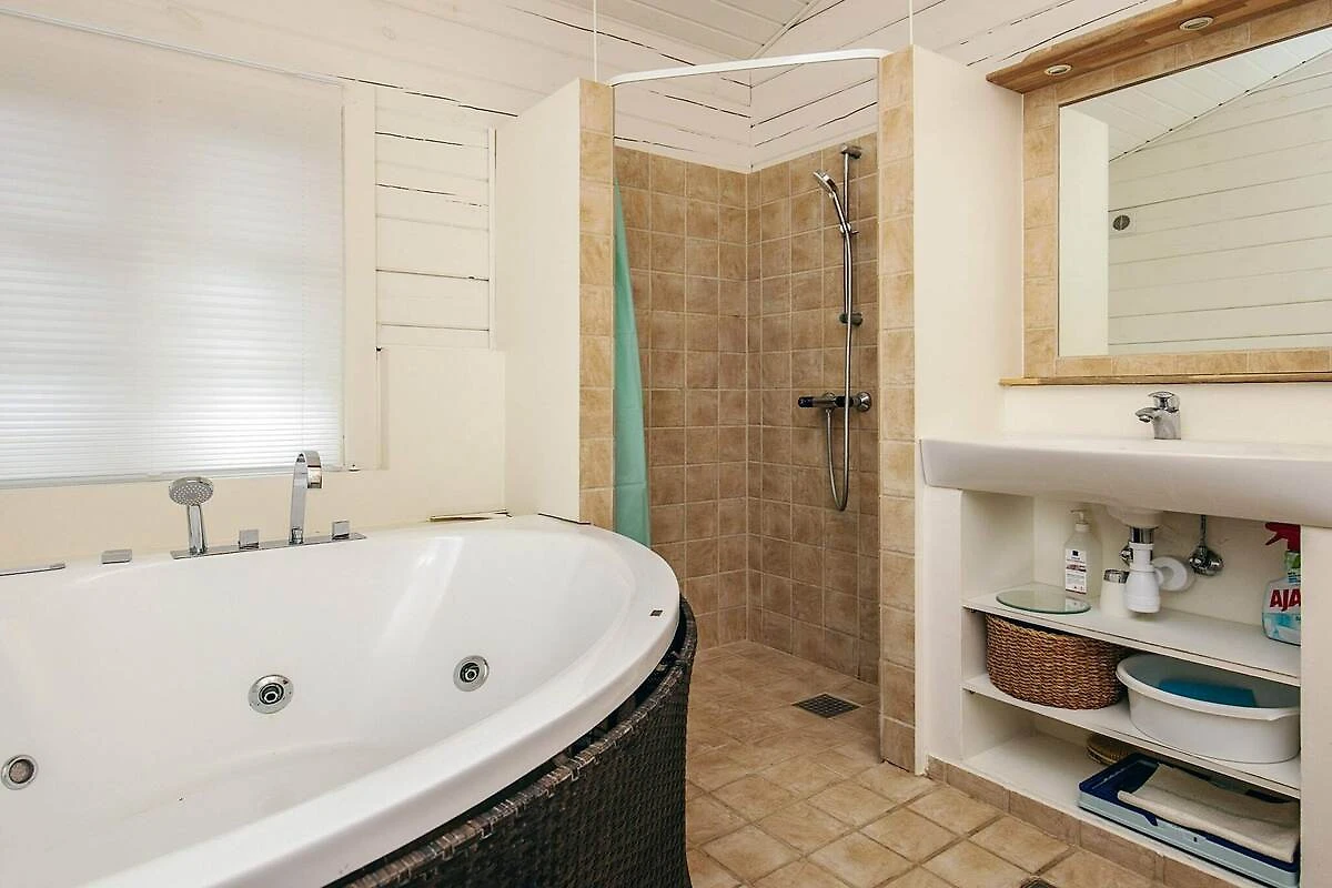 , Soggiorno(2x letto singolo), Soggiorno(2x letto singolo), Cucina separata(mobile cucina(2 fuochi), caffettiera, forno, forno a microonde, lavastoviglie, frigo con congelatore), Soggiorno/camera da letto(TV(canali televisivi tedeschi, canali TV danesi, canali TV norvegesi, canali TV svedesi)), Camera da letto(letto matrimoniale), Camera da letto(letto matrimoniale), Camera da letto(2x letto a castello), Bagno(lavabo, doccia, WC), Bagno(lavabo, doccia, WC), vasca idromassaggio(all’interno, riscaldata, 2 persone), riscaldamento(elettrico), mobili da giardino