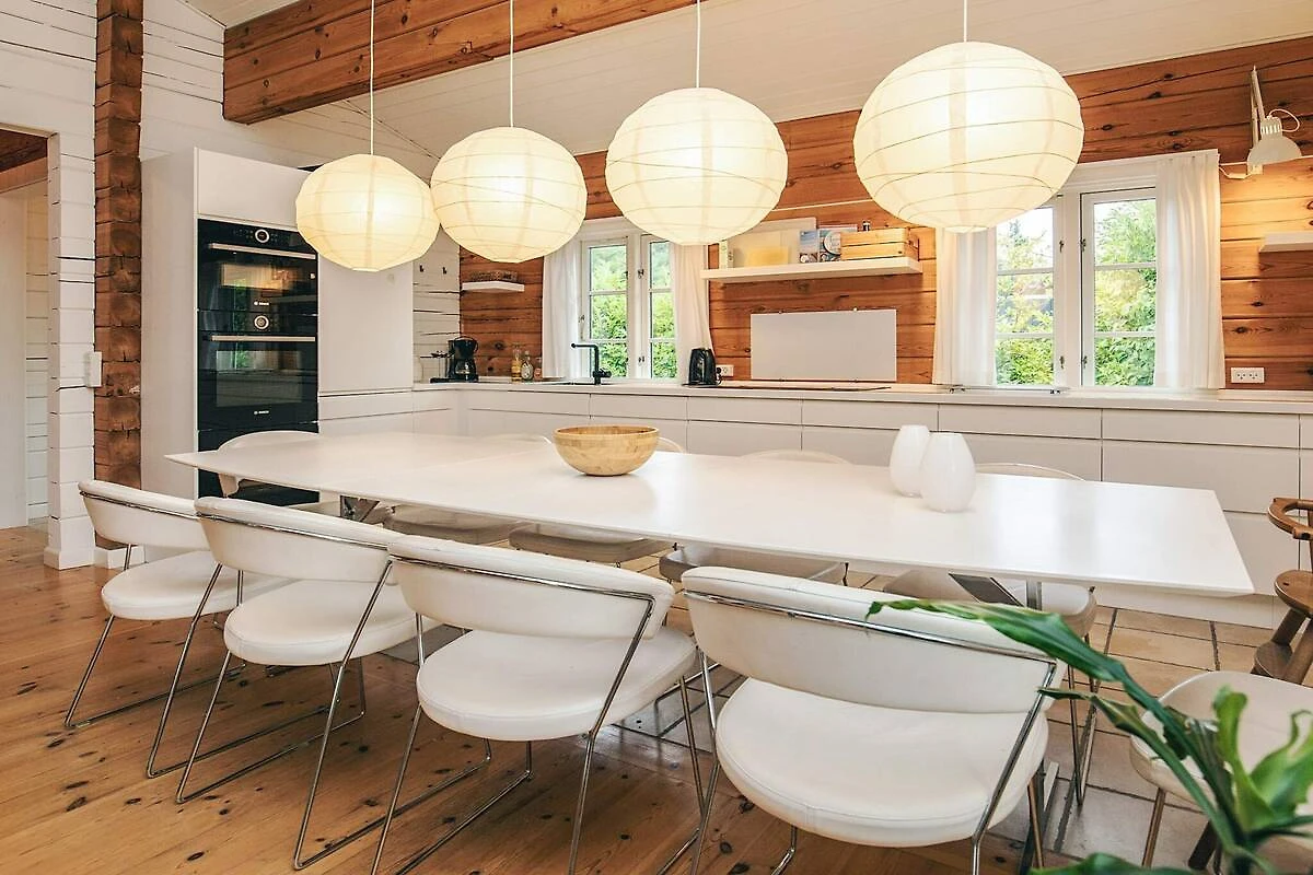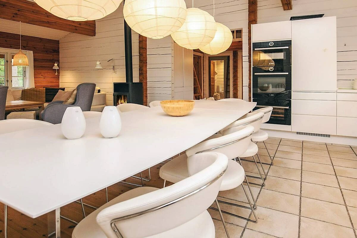 La cucina è ben attrezzata con tutto il necessario per le vostre vacanze ed è aperta sul soggiorno. Qui potrete godervi la vostra vacanza nell'accogliente zona pranzo o rilassarvi sul divano davanti alla stufa a legna e alla TV a schermo piatto. La casa è dotata di riscaldamento a pavimento in tutte le zone giorno e di connessione internet gratuita, ideale sia per le vacanze estive che invernali.