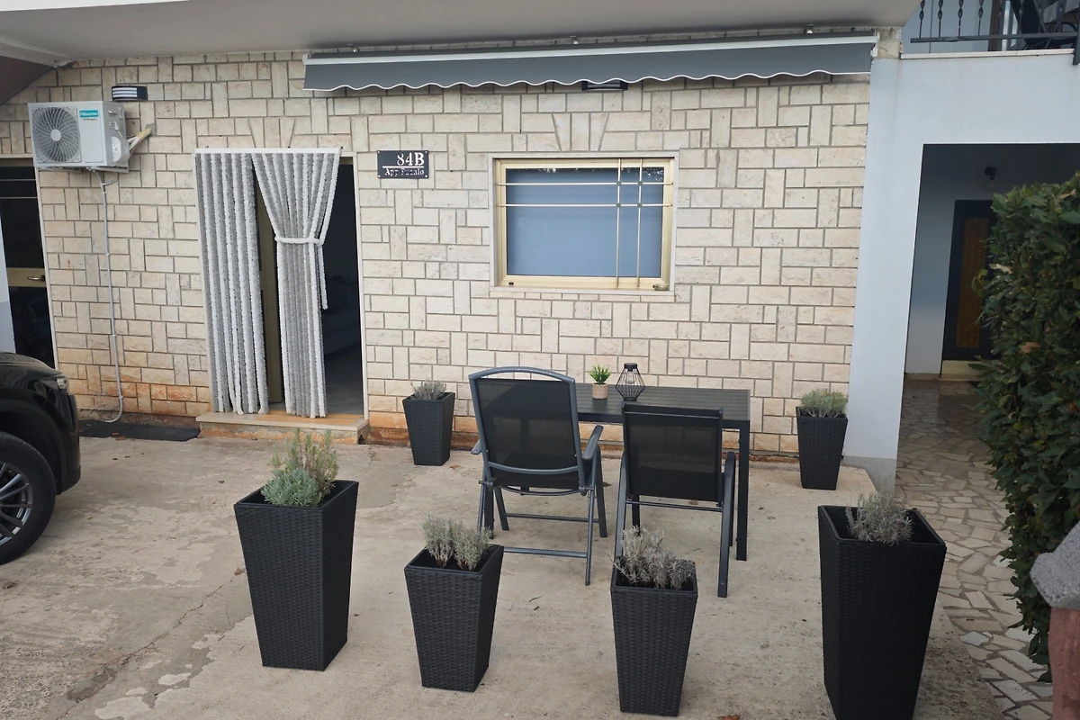 Comodamente, la proprietà offre due posti auto privati proprio accanto all'edificio. Sebbene gli animali domestici non siano ammessi, l'appartamento è ideale per chi cerca un rifugio tranquillo. La posizione è un gioiello, con una spiaggia sabbiosa a soli 3 km a Peruški, e la città di Marcana a breve distanza, a 7,5 km di guida. Pula, con il suo supermercato e aeroporto, è a circa 15 km, offrendo un facile accesso a ulteriori servizi e connessioni di viaggio.