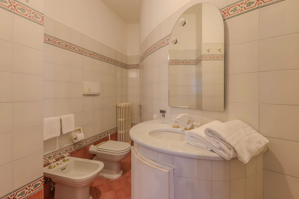 Durante l’attenta ristrutturazione di un antico casale è stato preservato il carattere autentico della tradizione toscana, arricchito da mobili pregiati e dettagli raffinati. Si estende su tre piani e unisce elementi storici e contemporanei in modo armonioso: pavimenti in terracotta e legno, camini in pietra, mobili antichi e comfort moderni donano calore e personalità a ogni ambiente. Il piano terra è composto da: