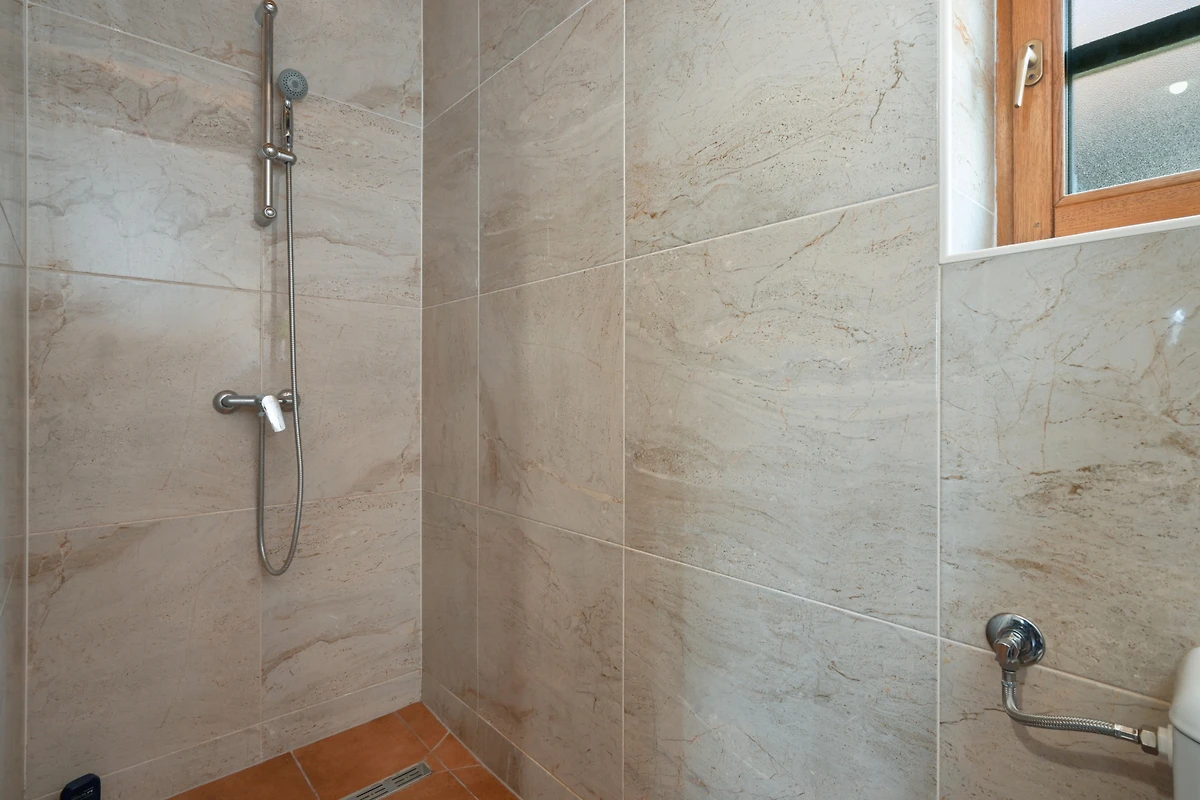 Il controllo del clima è eccellente con una pompa di calore per il riscaldamento e l'aria condizionata, garantendo comfort durante tutto l'anno. La casa include due bagni - uno con la doccia e un altro con il bagno. Ulteriori comodità includono WiFi, un ferro da stiro e un ampio parcheggio per due veicoli proprio sulla proprietà.