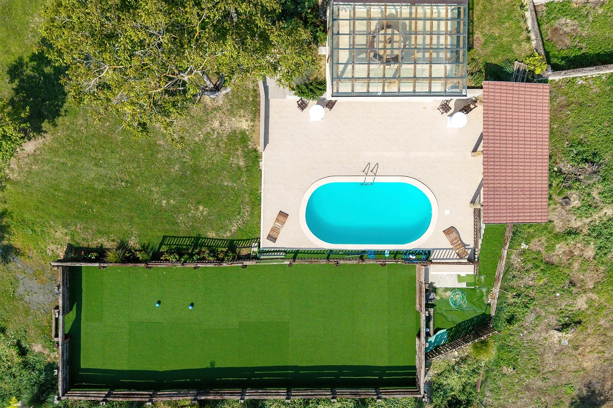 Gli appassionati di attività all'aperto apprezzeranno la piscina privata che misura 3,7x7 metri, perfetta per rinfrescanti tuffi. La proprietà presenta un bellissimo giardino con mobili da giardino, un'area barbecue e un appezzamento recintato, offrendo uno spazio esterno sicuro e piacevole. Un accogliente camino aggiunge calore e atmosfera durante le serate più fresche.