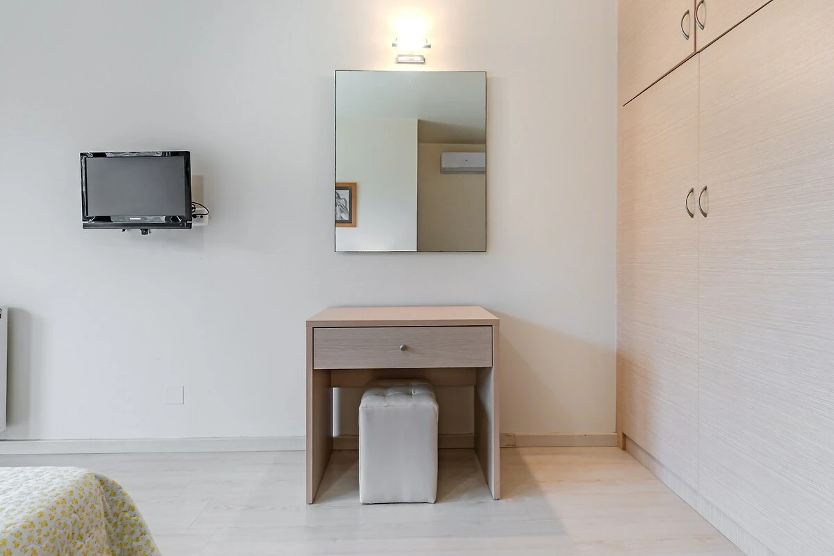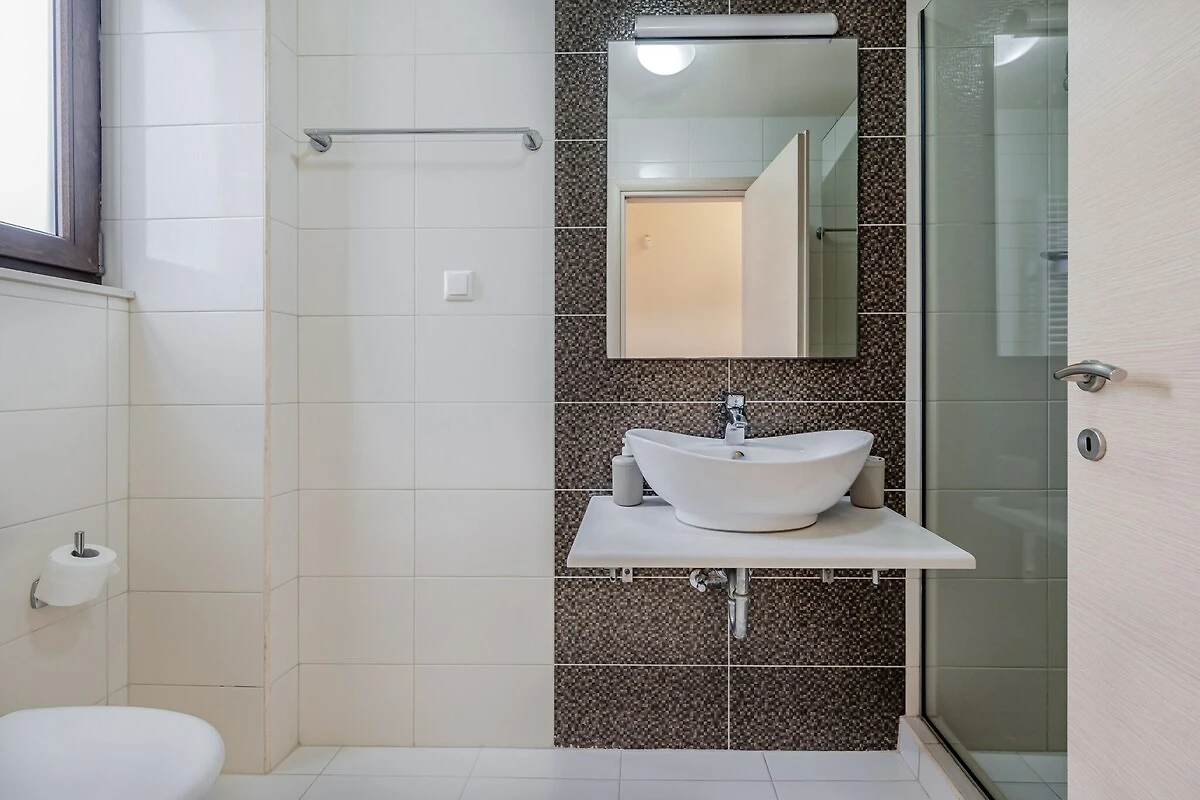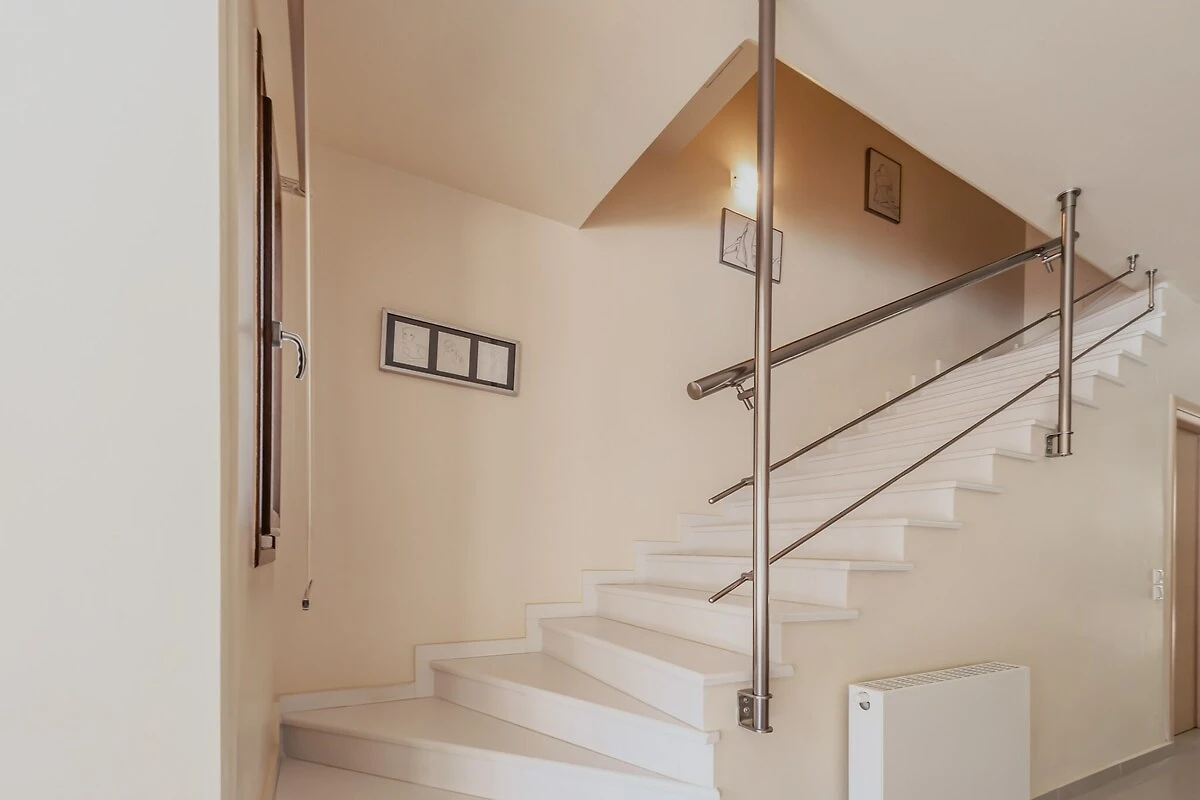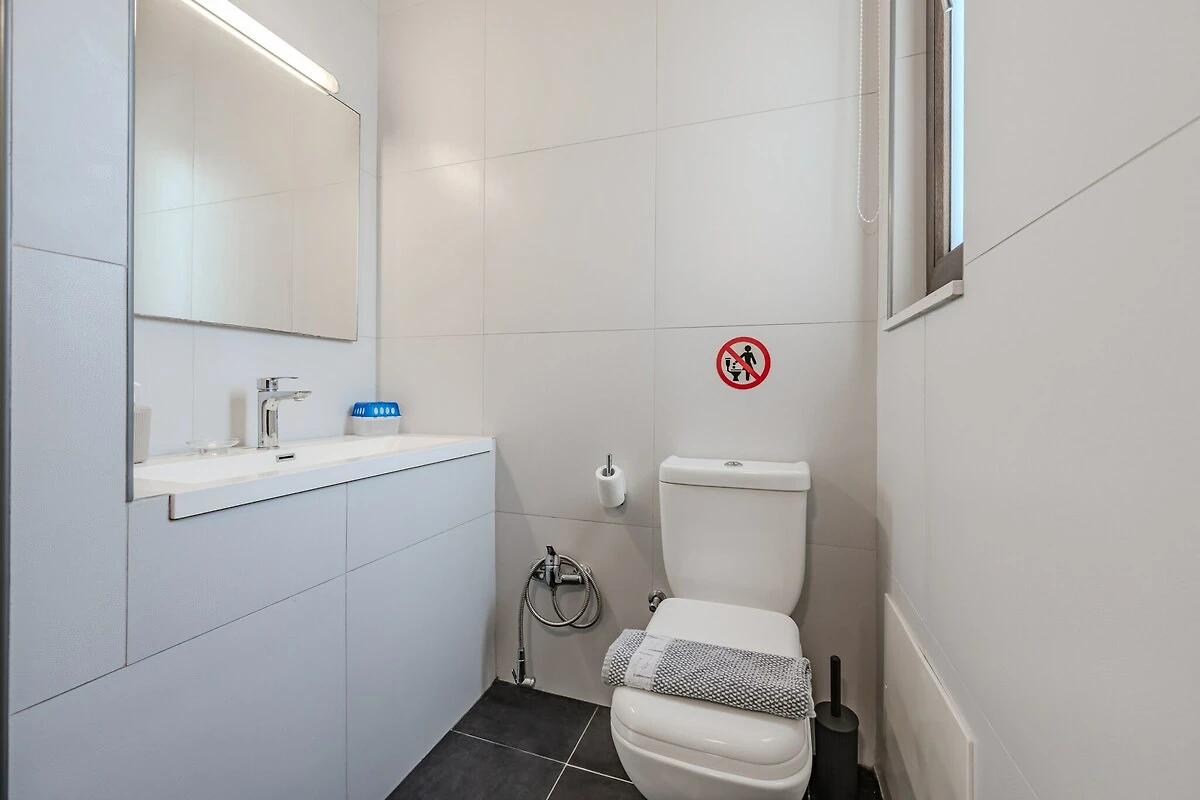 Entrate al piano terra e accedete a un arioso e soleggiato soggiorno open space. L'accogliente soggiorno, completo di una comoda area salotto e di un tavolo da pranzo per sei persone, si fonde armoniosamente con una moderna cucina completamente attrezzata. Qui, siete invitati a preparare e gustare piatti tradizionali cretesi in tutta semplicità. Ampie porte scorrevoli in vetro si aprono su un'ampia veranda, dove troverete un tavolo da pranzo all'aperto e un'accogliente area piscina, che fonde perfettamente la vita interna ed esterna.