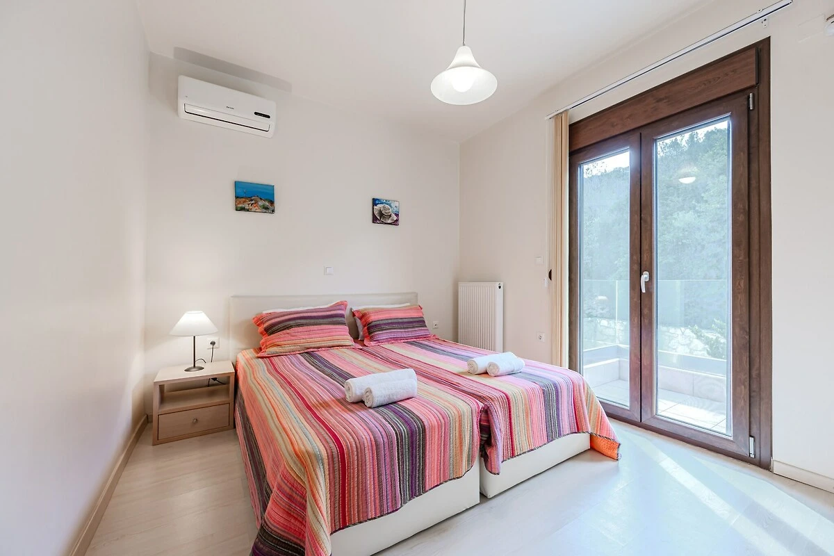 Fuggite in una villa con tre camere da letto splendidamente arredata nel tranquillo villaggio costiero di Palaiokastro, che offre un perfetto connubio tra il fascino tranquillo del villaggio e il comodo accesso al cuore pulsante di Heraklion. Questo spazioso rifugio di 200 mq è progettato per chi cerca comfort, privacy e viste mozzafiato, rendendolo un rifugio ideale per famiglie o gruppi fino a sei persone.