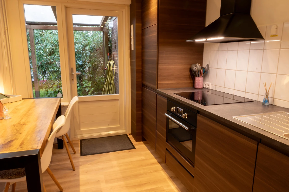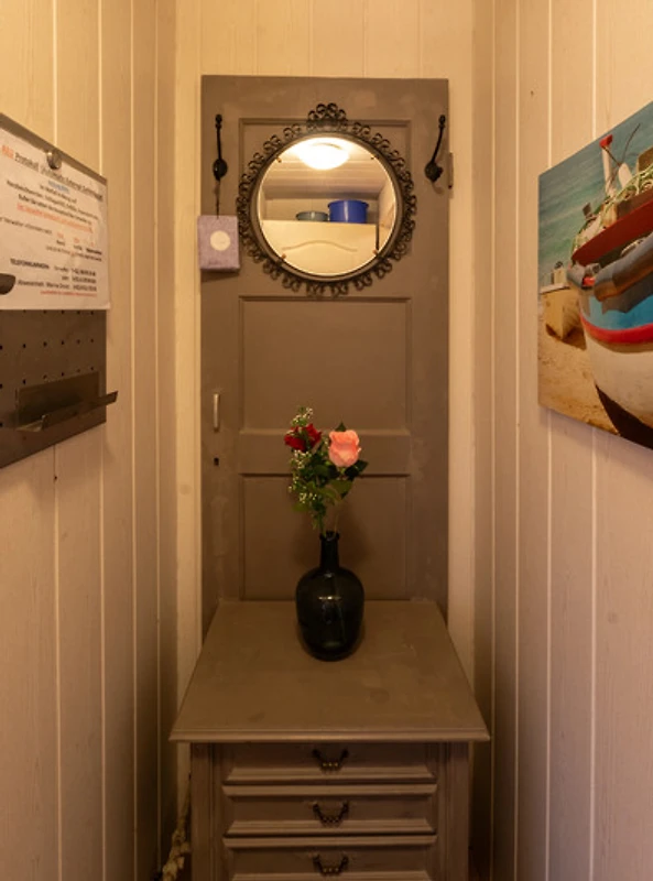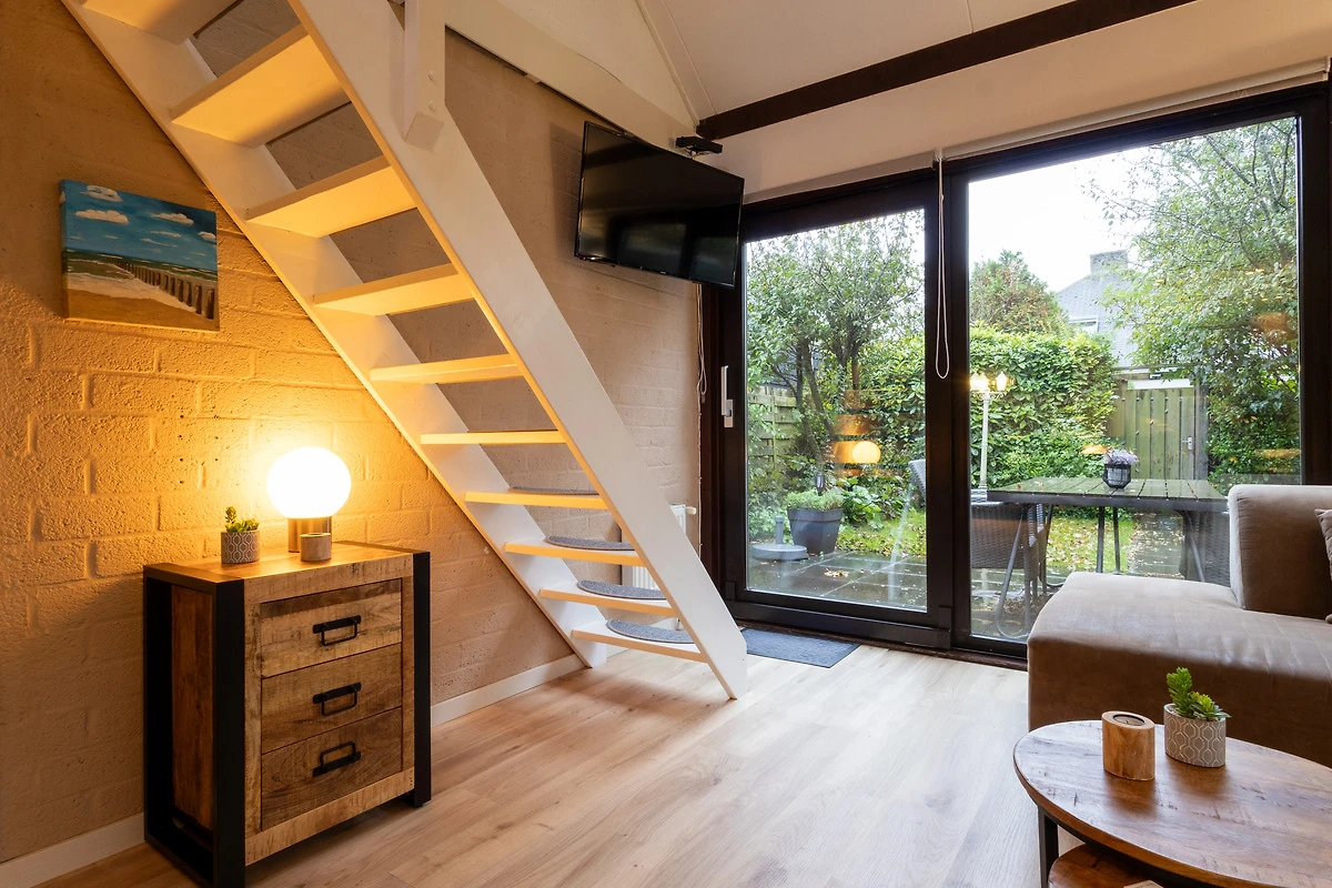 Il bungalow è adatto per un massimo di quattro persone. La casa è stata recentemente ristrutturata e arredata. Il soggiorno open space con un divano è dotato di una televisione LCD con 70 canali, tra cui i 15 canali tedeschi più conosciuti, riscaldamento centrale e una zona pranzo. La cucina a vista dispone di una macchina da caffè Senseo, una macchina da caffè a filtro, un bollitore, un forno a microonde, una lavastoviglie, un frigorifero con congelatore, un piano cottura a induzione e una lavatrice. Il bungalow dispone di una camera da letto al piano terra e una camera da letto al piano superiore. La camera da letto al piano terra è arredata con un letto matrimoniale elettrico Auping (200 cm x 200 cm), mentre la camera da letto al piano superiore è arredata con due letti singoli boxspring da 70 x 200 cm. Il bagno si trova al piano terra e dispone di una doccia (pioggia, massaggio e getti), un WC e un lavabo.