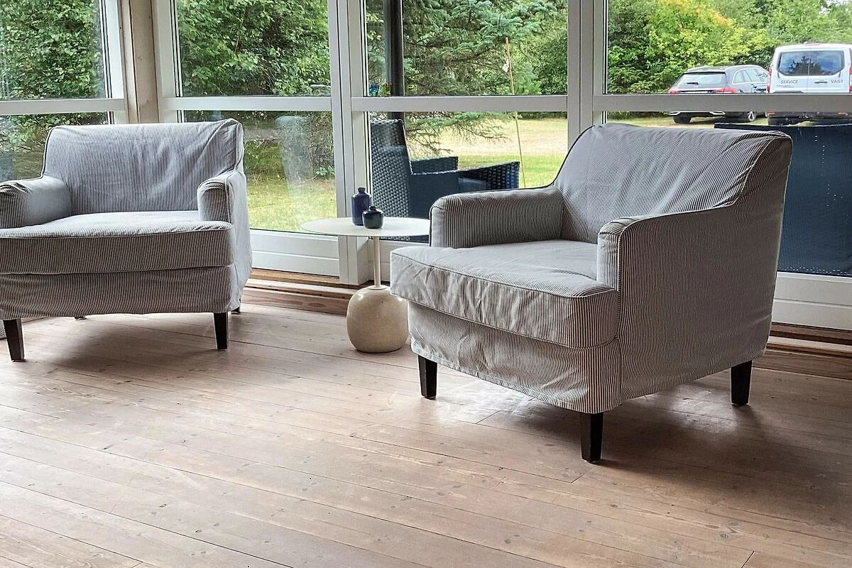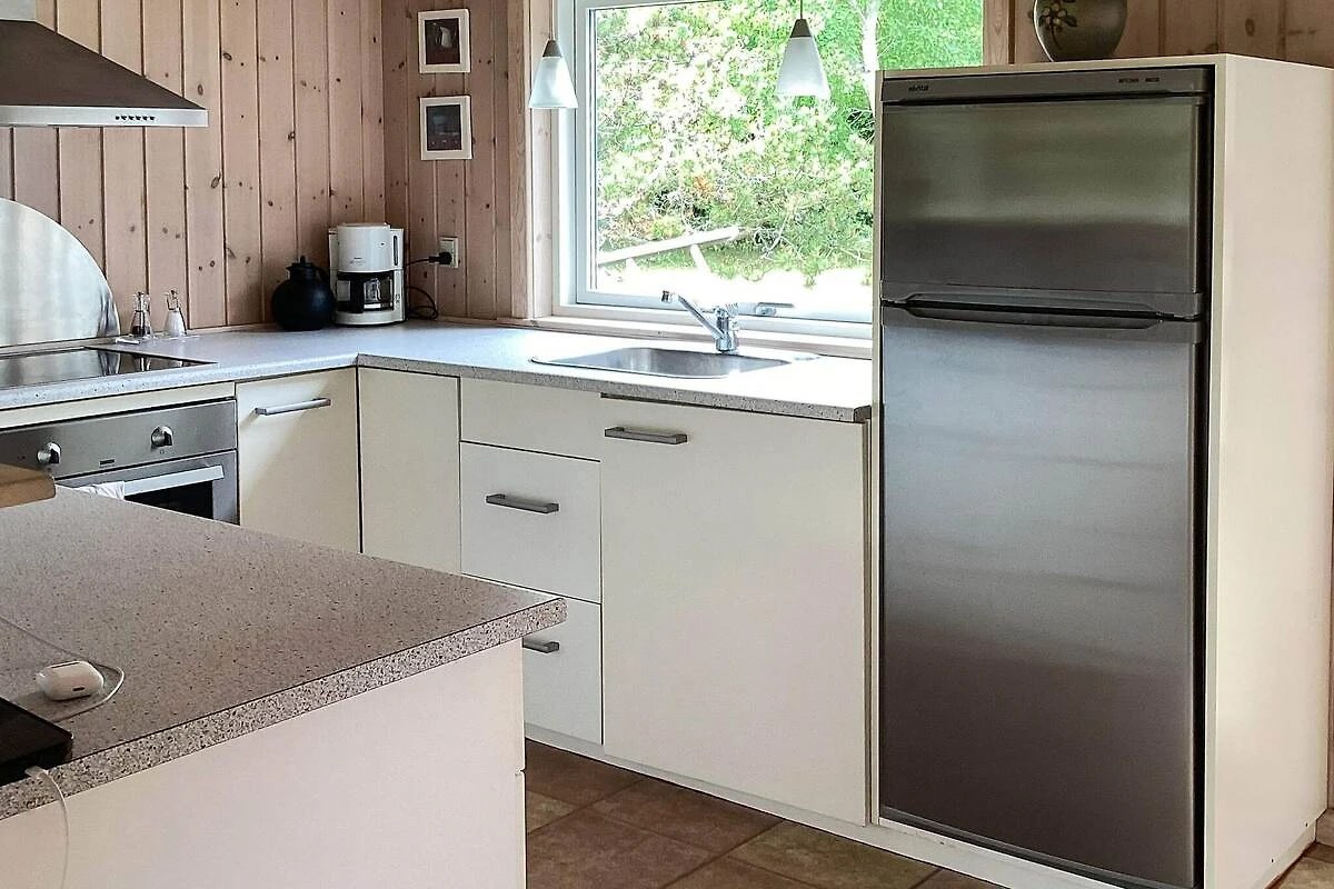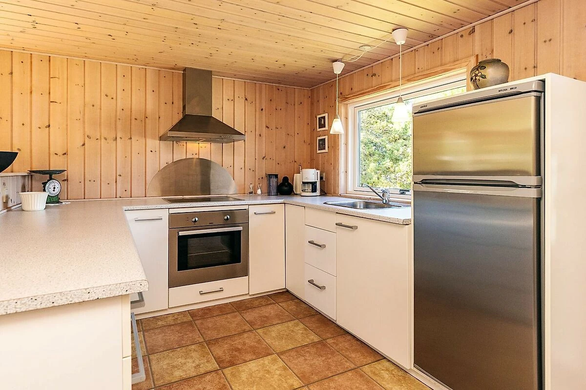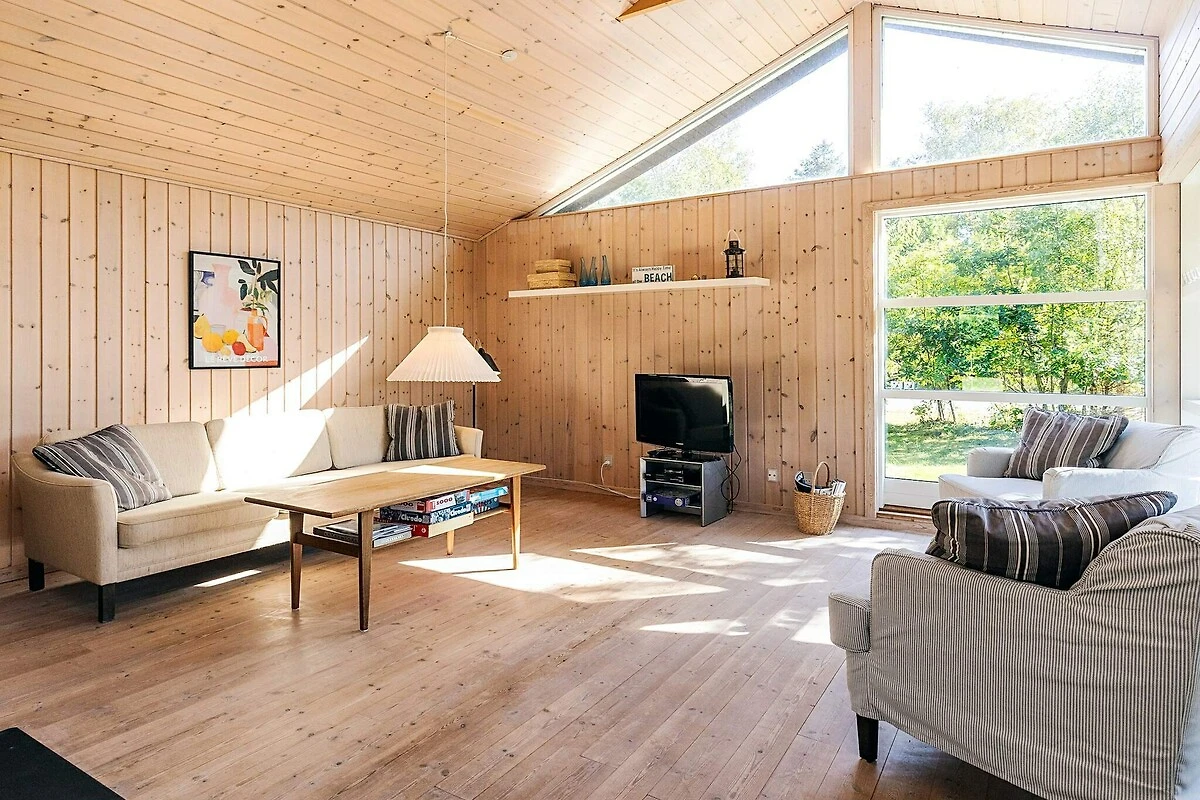 Cucina separata(mobile cucina(elettrico), frigo con congelatore), Soggiorno/camera da letto(TV(canali televisivi tedeschi, canali TV danesi)), Camera da letto(letto matrimoniale), Camera da letto(2x letto singolo), Bagno(lavabo, doccia, WC), riscaldamento(elettrico), terrazza, mobili da giardino, lettini prendisole