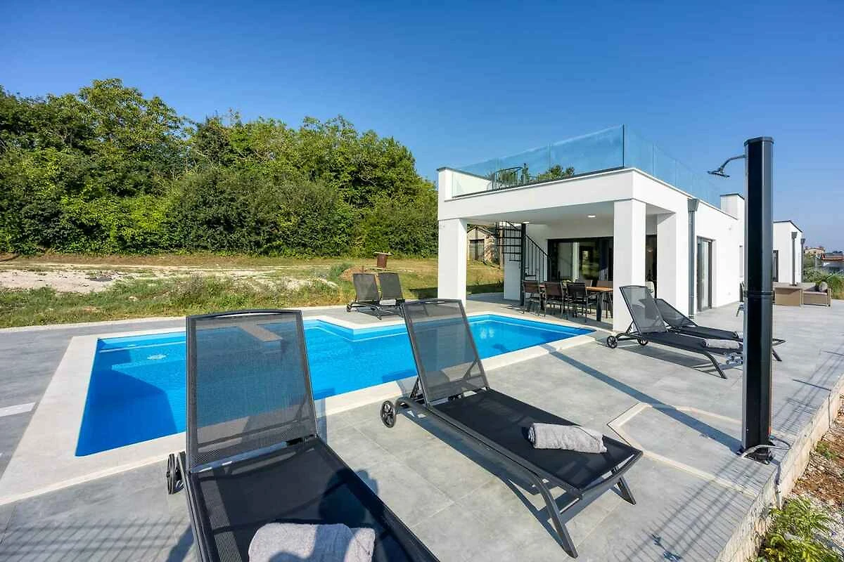 Karojba. La villa si trova in una trama del giardino. Parcheggio (per 3 auto) sulla proprietà.