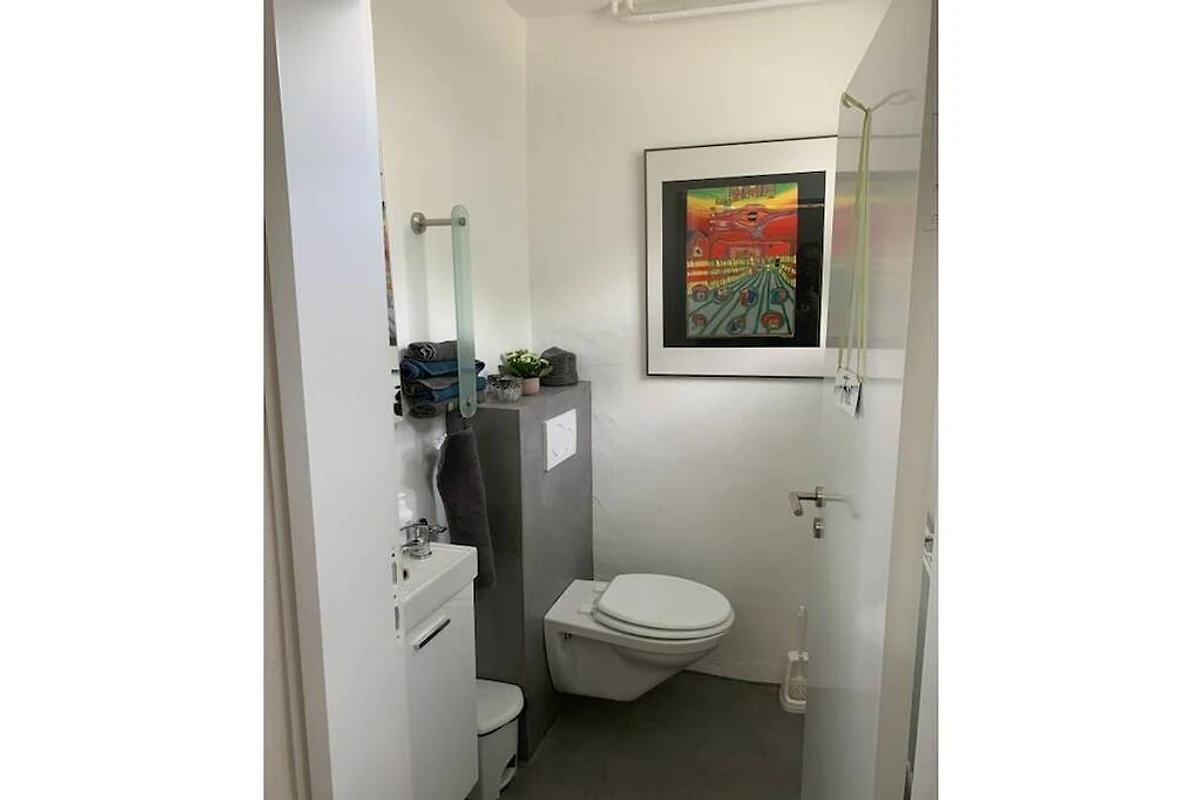 Pianterreno: (Atrio(, ), Soggiorno(, biblioteca, TV), guest toilet(, Bagno di servizio, lavandino), sgabuzzino(, congelatore, asciugabiancheria, lavatrice, asse da stiro, ferro da stiro, asciugatoio))