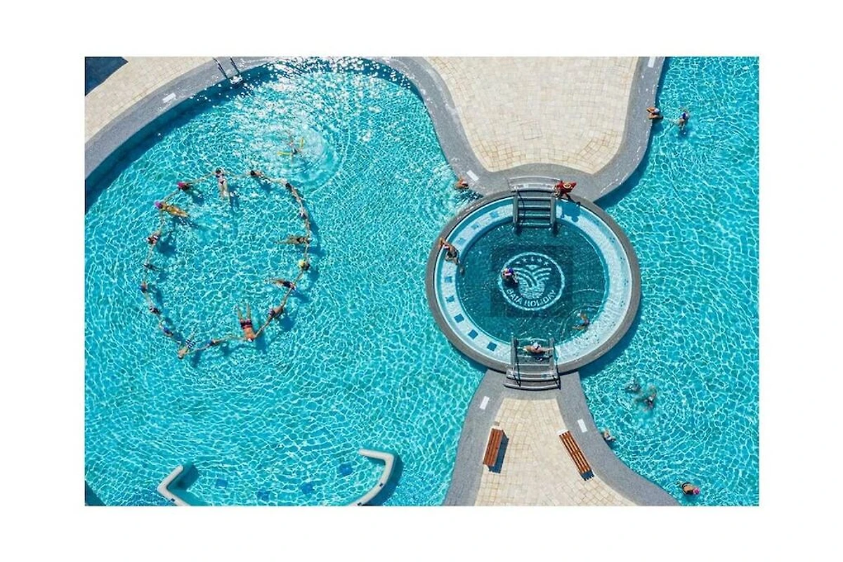 L'ampio complesso di piscine offre momenti rinfrescanti e rilassanti per tutte le età. Oltre alla piscina, sono disponibili lettini idromassaggio, getti d'acqua e una piscina relax. Per i più piccoli, è disponibile un fantastico spray park, giochi d'acqua e scivoli. Lettini e ombrelloni sono disponibili a noleggio.