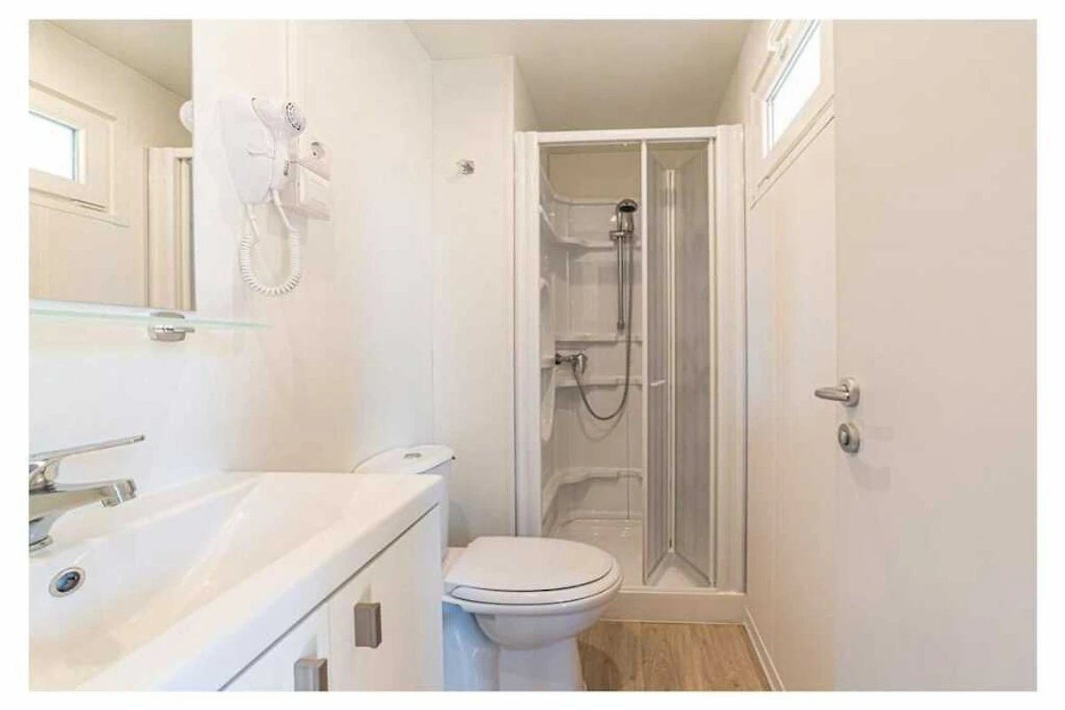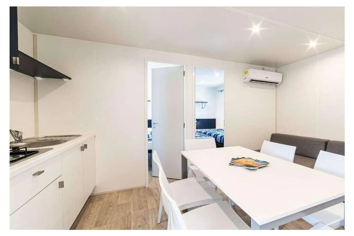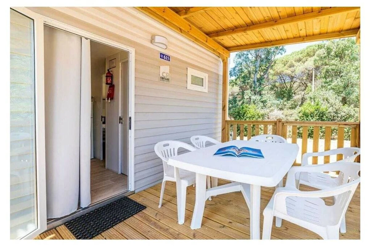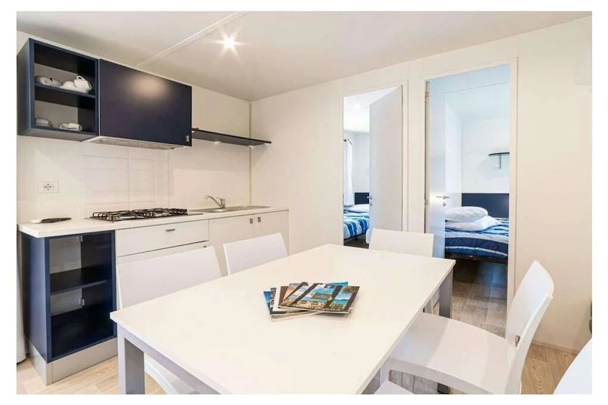 La casa mobile Baia Sardinia può ospitare un massimo di 6 persone. Dispone di una camera da letto con letto matrimoniale e due camere da letto aggiuntive con due letti singoli ciascuna. Il soggiorno è dotato di tavolo e sedie e TV satellitare. L'angolo cottura è integrato nel soggiorno e dispone di un piano cottura a 4 fuochi, pentole, stoviglie, posate e un frigorifero con congelatore. Il bagno è diviso in due stanze. Una è dotata di doccia, WC, asciugacapelli e lavandino, mentre la seconda è dotata di WC e lavandino. L'area salotto coperta con tavolo e sedie invita a rilassarsi mentre i bambini si divertono nel parco giochi. Nota: se avete bisogno di più di un alloggio, di solito è possibile, poiché disponiamo di diverse proprietà della stessa tipologia.