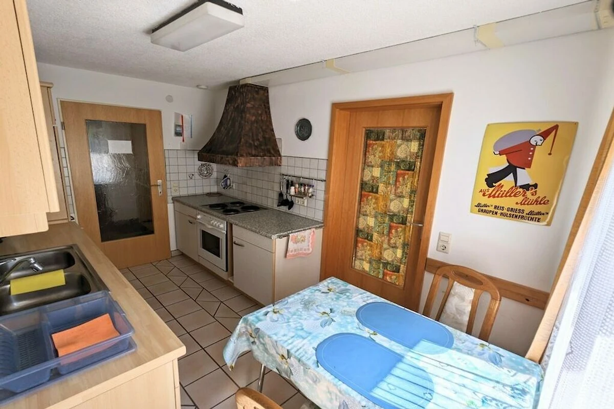 Questa affascinante casa vacanze è ideale per due persone e offre un confortevole spazio abitativo di 60 m² nel cuore della Foresta Nera. La casa è arredata con cura e dispone di un accogliente soggiorno con poltrona, divano letto singolo e TV, che la rende il luogo ideale per rilassarsi dopo una giornata di esplorazione. La cucina è attrezzata con piano cottura, forno e frigorifero, permettendovi di preparare i vostri piatti preferiti. Una luminosa camera da letto con letto matrimoniale e un moderno bagno con doccia, WC e lavabo completano la struttura, garantendo un soggiorno piacevole.