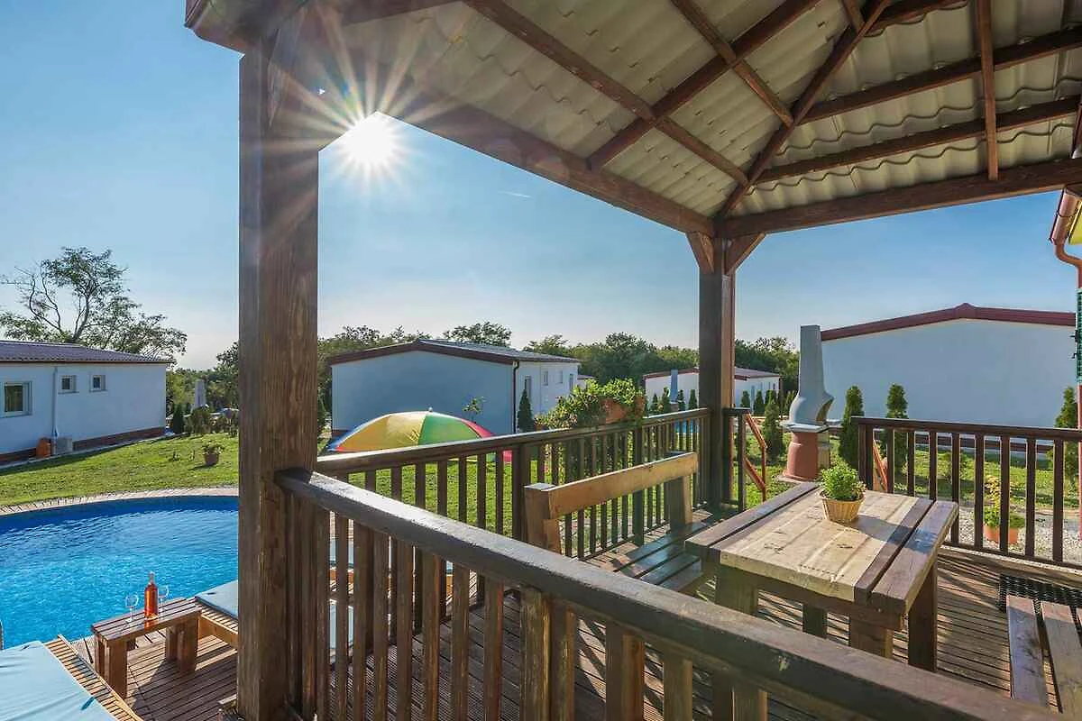 Piscina esterna (diametro 5 m, profondità 1,3 m, ad uso privato). Tutti gli ospiti del Village Park possono anche utilizzare il parco giochi in comune con la piscina per bambini.