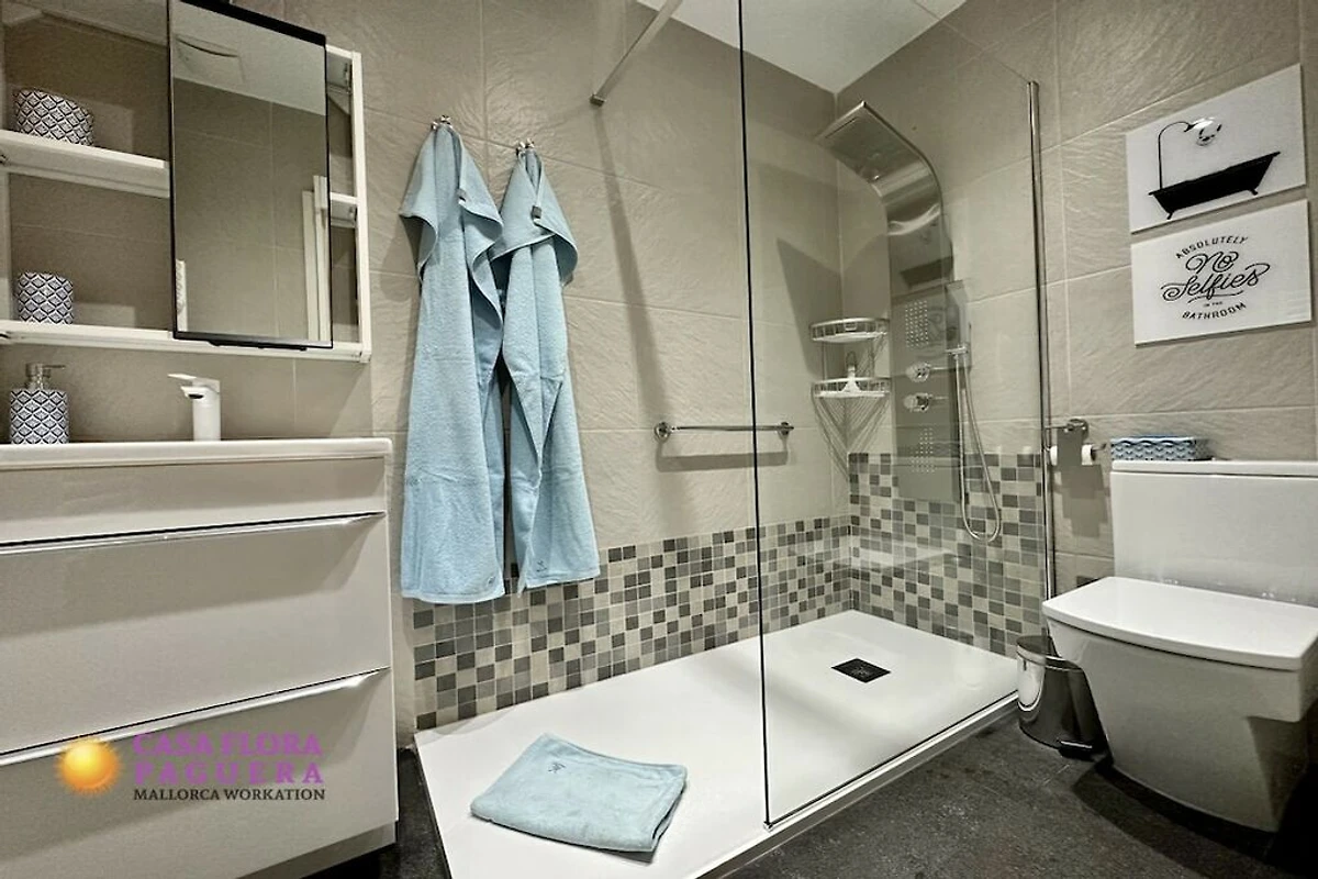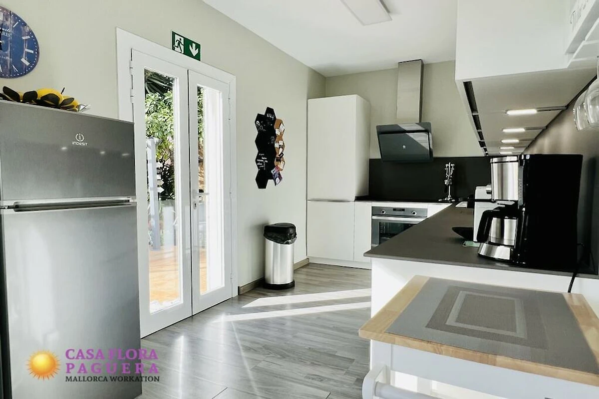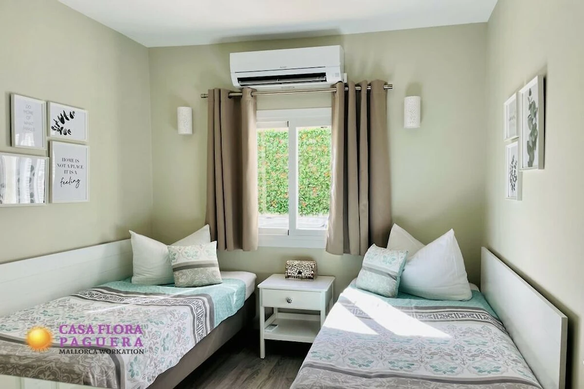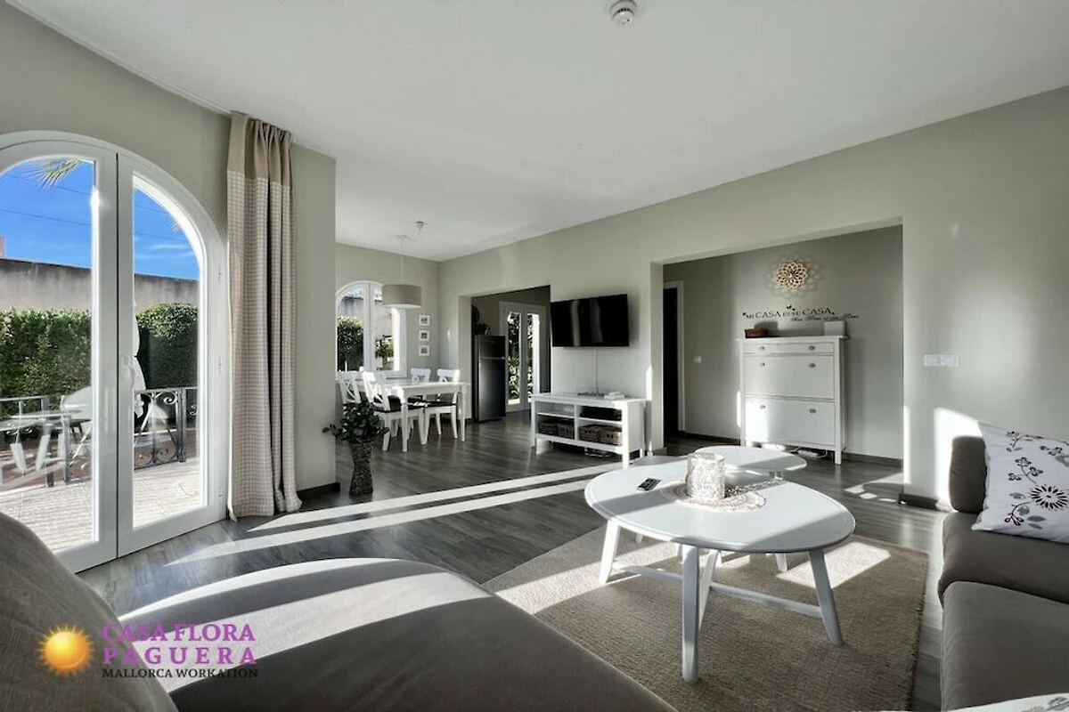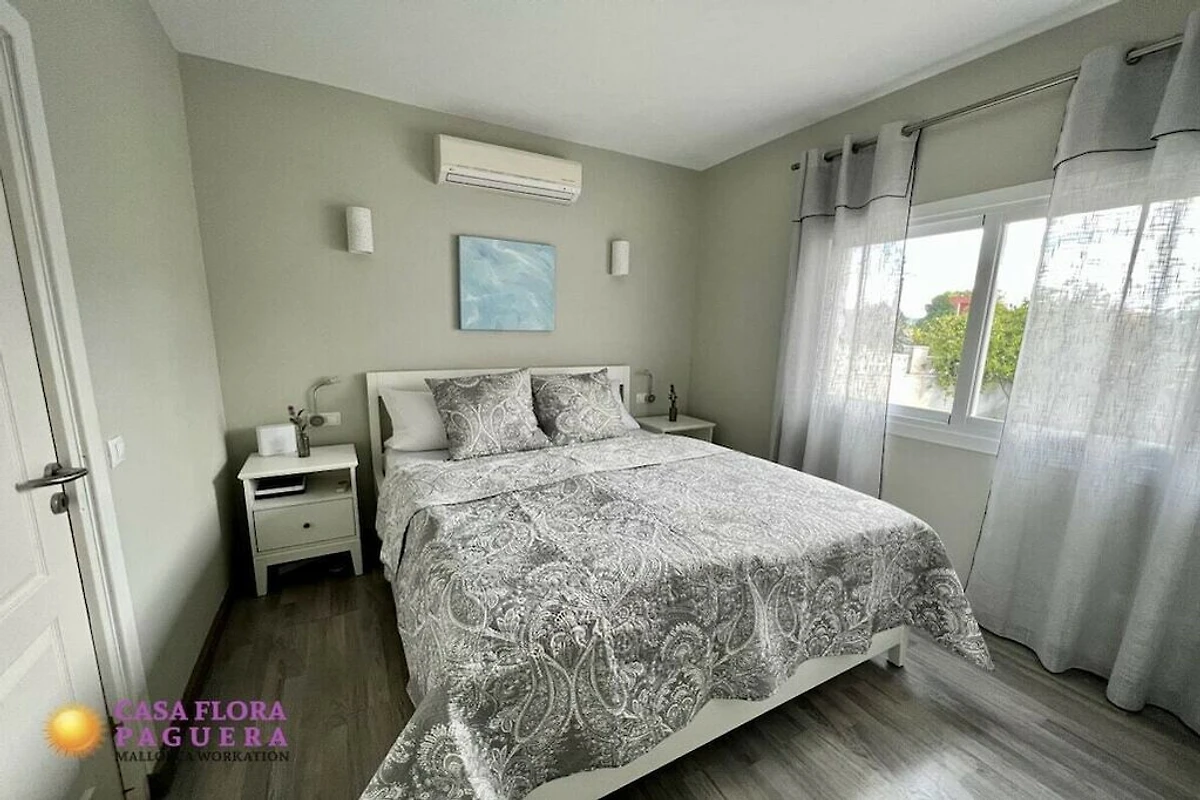 La nostra villa indipendente nella località di Paguera si trova a pochi minuti a piedi dalla spiaggia e dal centro città, ma gode di una posizione tranquilla. Immersa in un giardino di 400 metri quadrati, offre spazio per quattro persone (+ un bambino fino a 3 anni) con un ampio soggiorno e sala da pranzo, due camere da letto, due bagni, una spaziosa cucina e una terrazza. Un ulteriore studio climatizzato con scrivania, monitor e stampante offre l'opportunità perfetta per combinare lavoro e relax. Per rinfrescarsi, è disponibile una vasca idromassaggio (gratuita in estate, a pagamento in inverno). Una PlayStation, una TV satellitare e un lettore DVD garantiscono la noia.