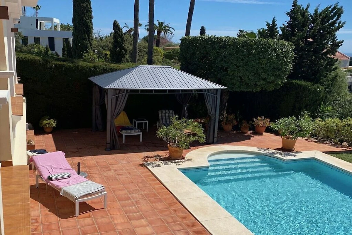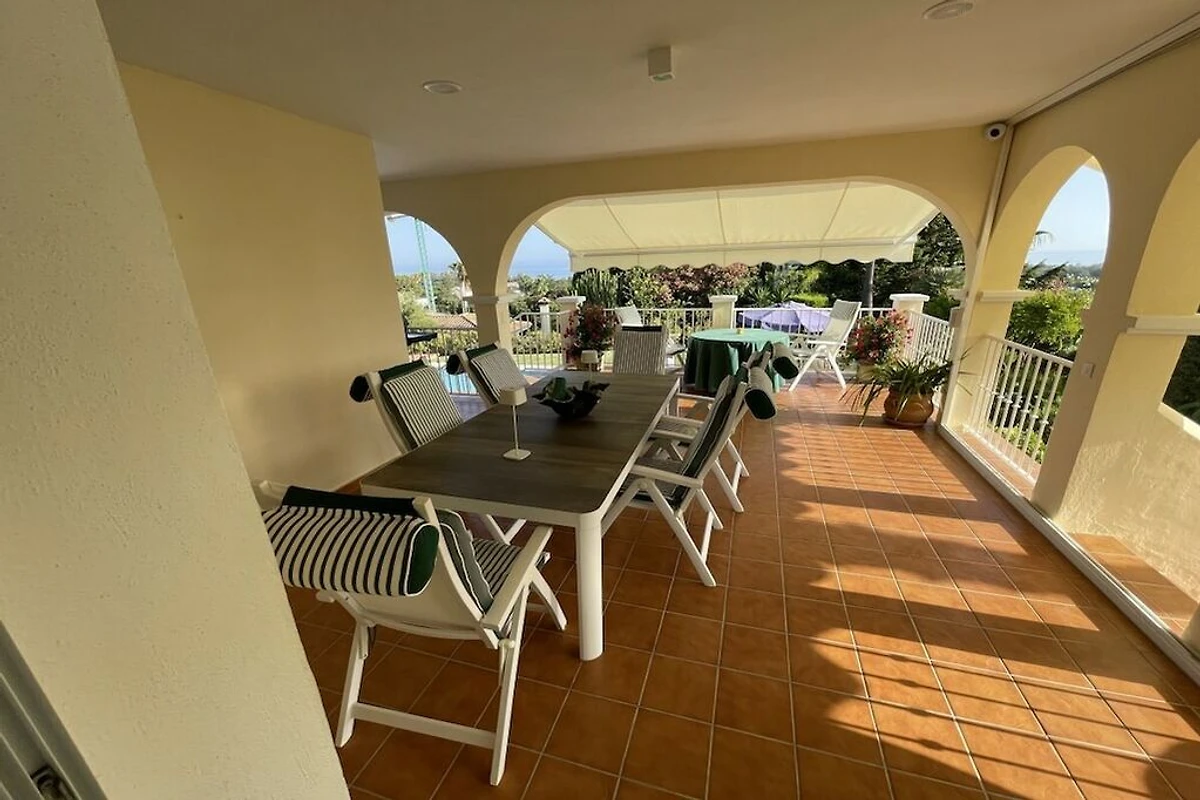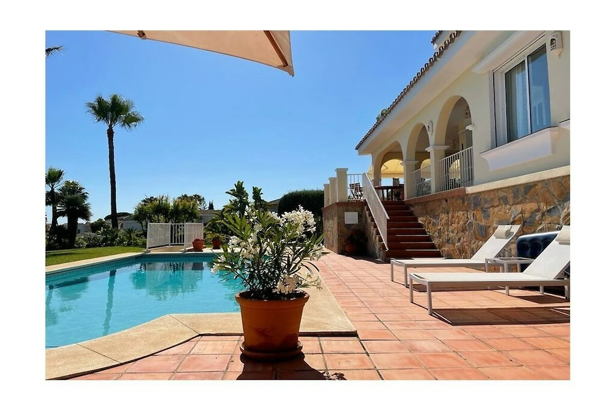Godetevi una vacanza da sogno in questa splendida villa con piscina privata, giardino e vista panoramica a 180° sul mare, nella splendida urbanizzazione di Elviria.