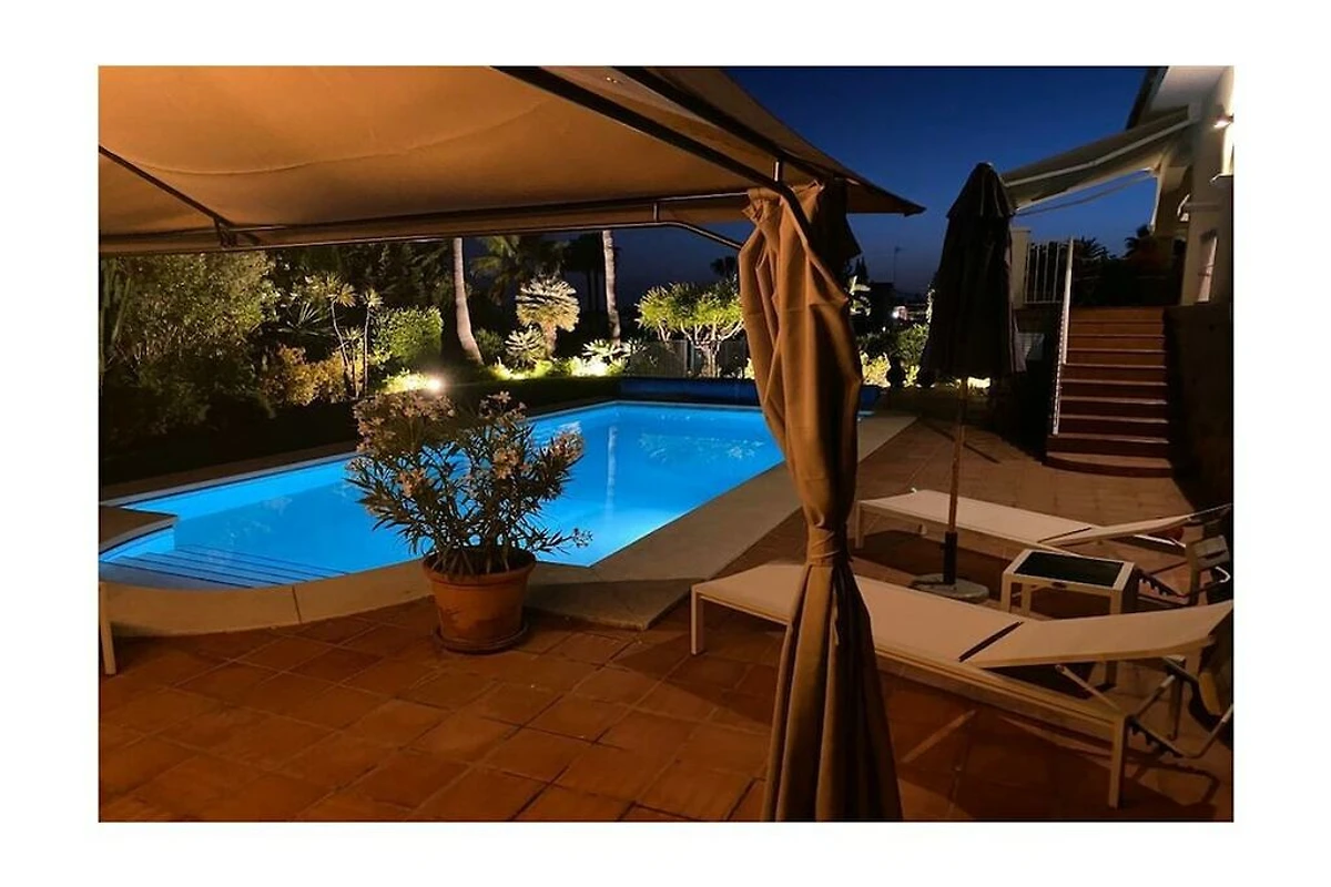 La villa, con il suo ampio terreno recintato e una parte appartata del giardino, è a vostra completa disposizione. Grazie alla posizione elevata della casa, potrete godere di una splendida vista a 180° sul mare blu intenso.