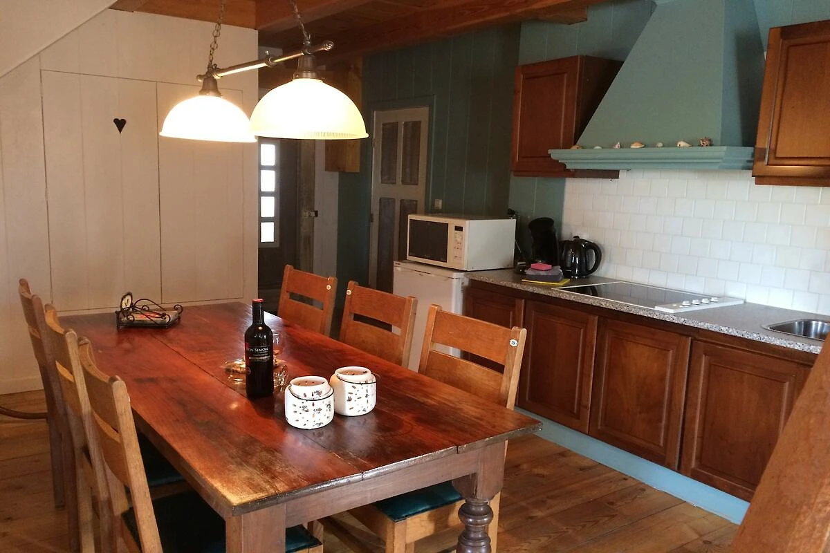 All'interno, l'appartamento combina il fascino della fattoria con uno stile elegante e moderno. Ci sono due accoglienti camere da letto, ciascuna con un letto matrimoniale, più un grazioso letto singolo in soggiorno per un ospite aggiuntivo. L'ampio soggiorno dispone di una cucina a vista completamente attrezzata con forno, lavastoviglie e frigorifero, che rende facile cucinare e cenare insieme. Una zona soggiorno separata con TV e WiFi gratuito crea l'atmosfera per serate rilassanti, mentre l'ampio bagno con doccia e WC aggiunge ulteriore comfort.