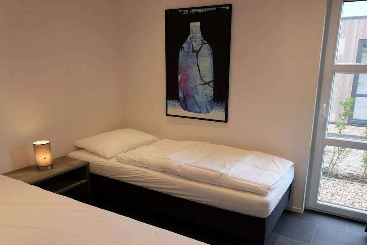C'è una camera da letto con letto matrimoniale e zona guardaroba separata, e un'altra camera con due letti singoli. Entrambe le camere hanno accesso diretto al bagno. Il WC è accessibile separatamente dal corridoio.