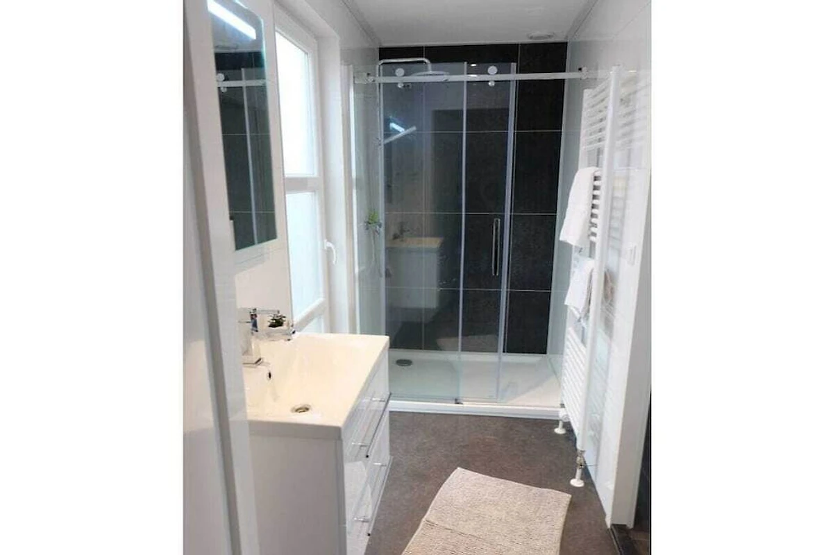 Pianterreno: (Cucina separata(, , tavolo da pranzo, stufa, bollitore, mobile cucina, caffettiera, forno, forno a microonde, lavastoviglie, frigorifero, congelatore, congelatore), Camera da letto(, , letto matrimoniale), Camera da letto(, letto singolo, letto singolo), Bagno(, doccia, doccia, lavandino), guest toilet(, Bagno di servizio))