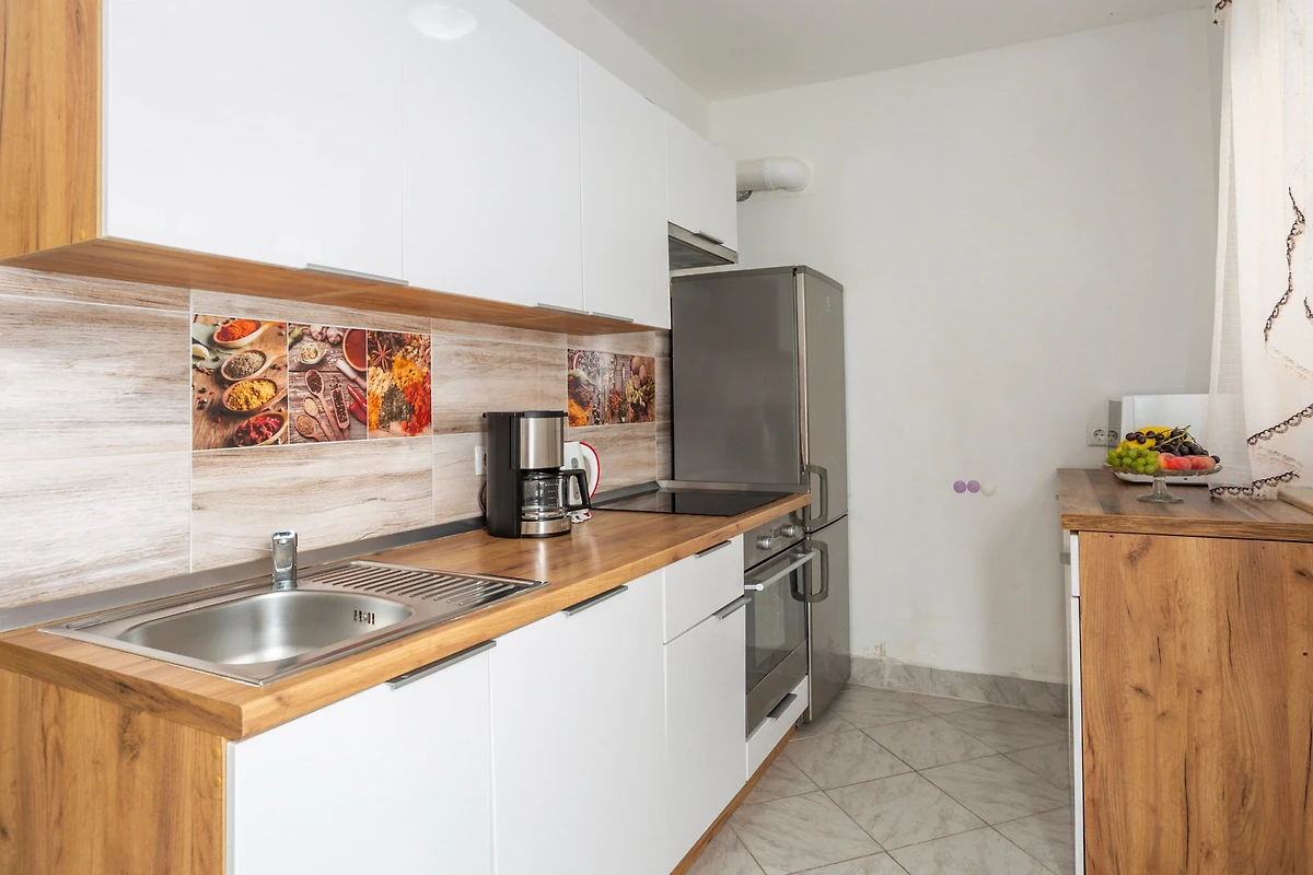 Comfort moderni includono l'aria condizionata, WiFi, TV satellitare e un ferro da stiro per la comodità degli ospiti. I proprietari di animali domestici saranno lieti di sapere che sono benvenuti fino a 2 animali. La villa si trova in un'area urbana ben collegata, a soli 1 km da una spiaggia rocciosa, 1,3 km dal centro di Novi Vinodolski e 1,5 km da un supermercato.