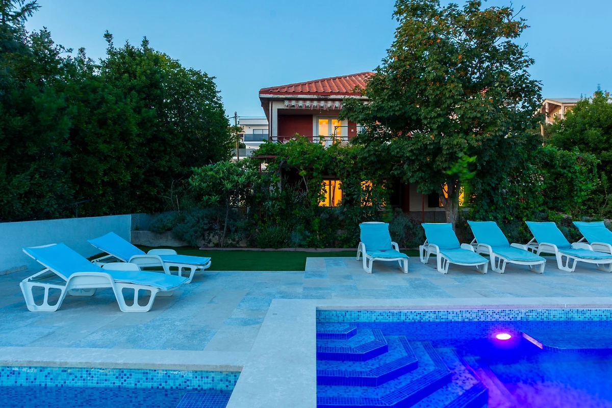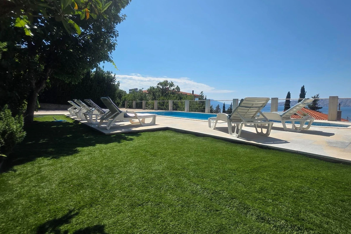 Villa Nina offre un delizioso rifugio per famiglie e coppie che cercano una casa vacanze confortevole e ben attrezzata a Novi Vinodolski. Questa spaziosa proprietà di 160 metri quadrati vanta stupende viste sul mare, montagne, piscina e giardino, offrendo un contesto pittoresco per un soggiorno indimenticabile.